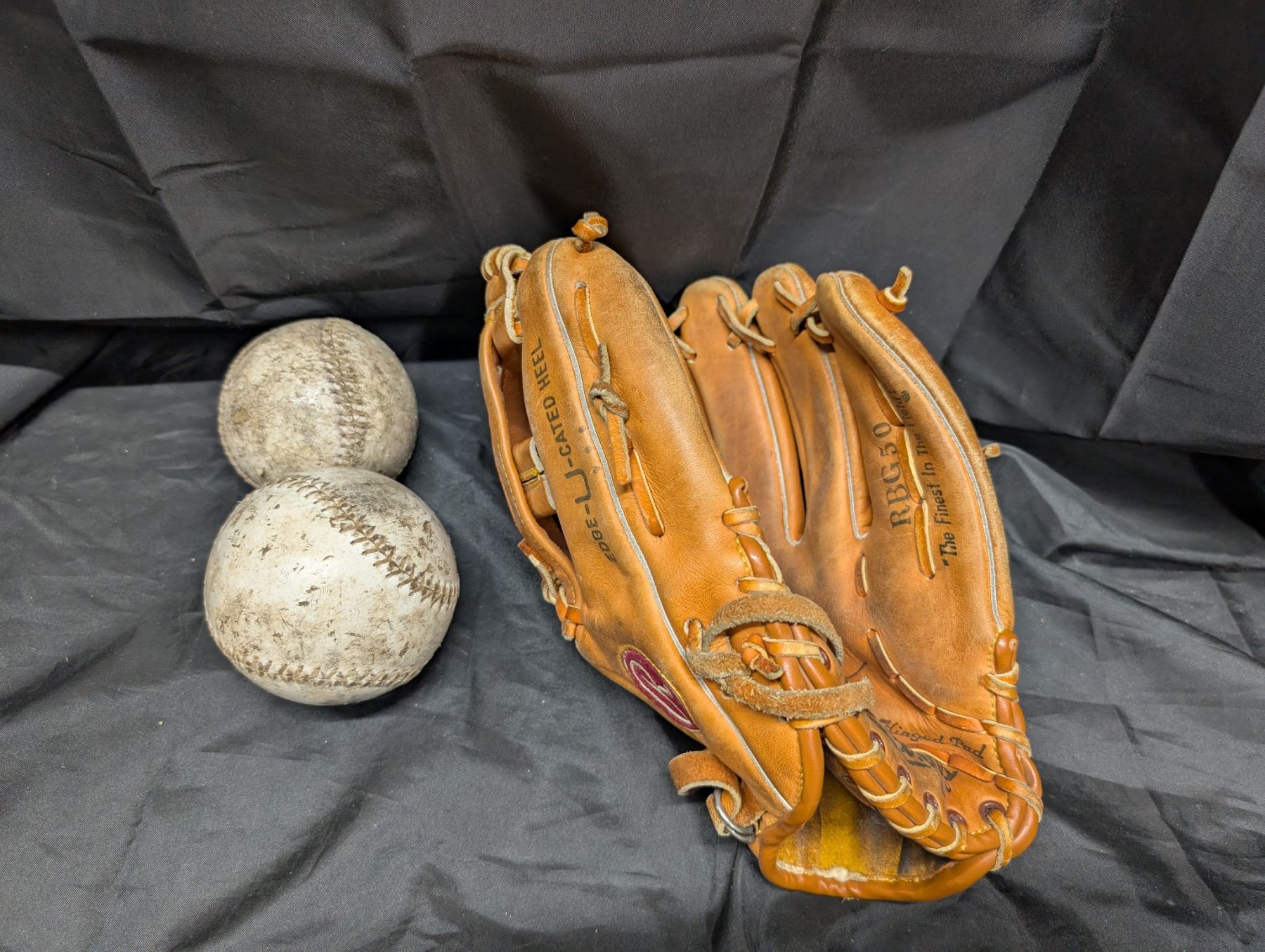 Vintage Rawlings Baseball Glove with (2) Vintage Baseballs