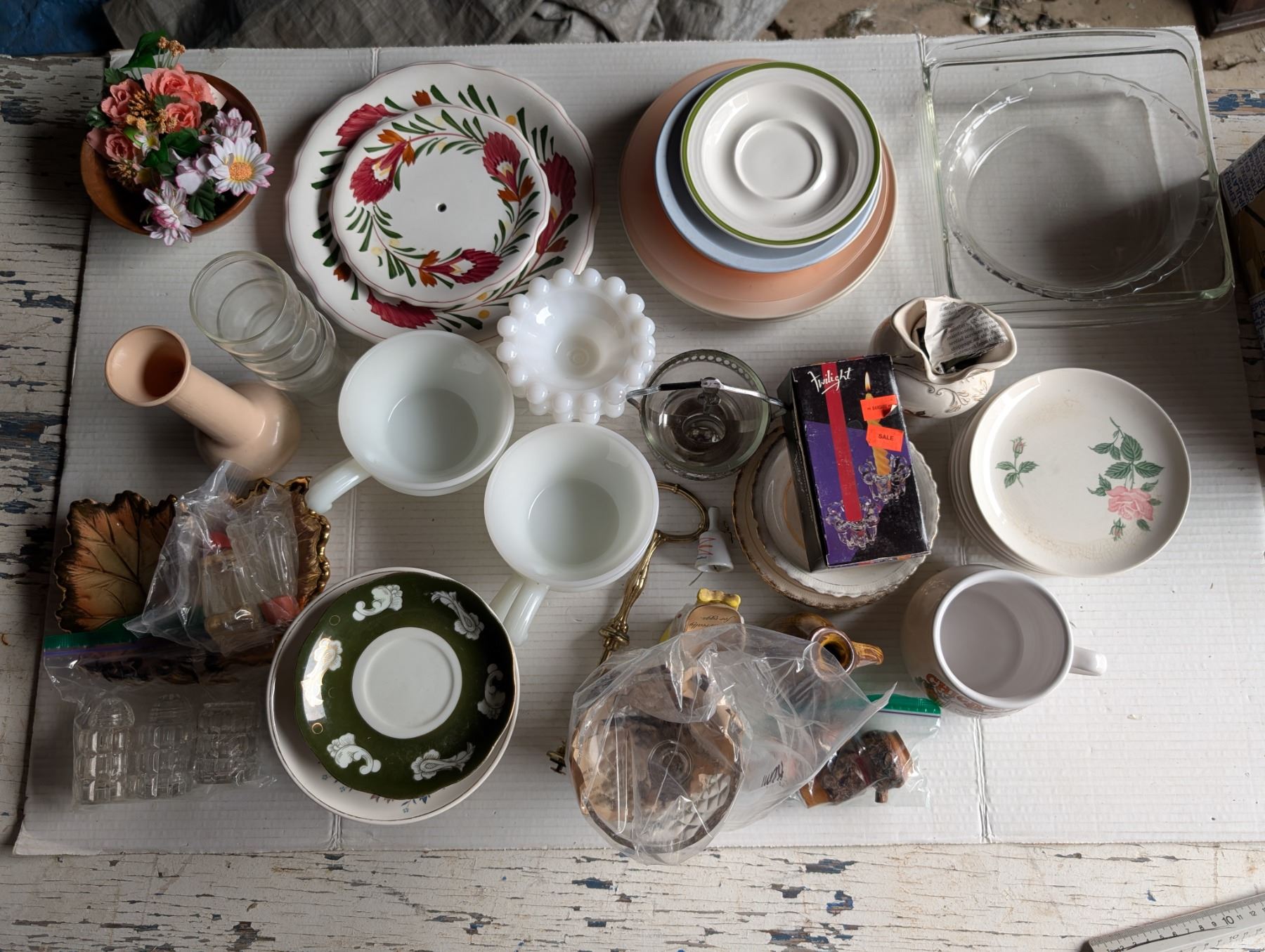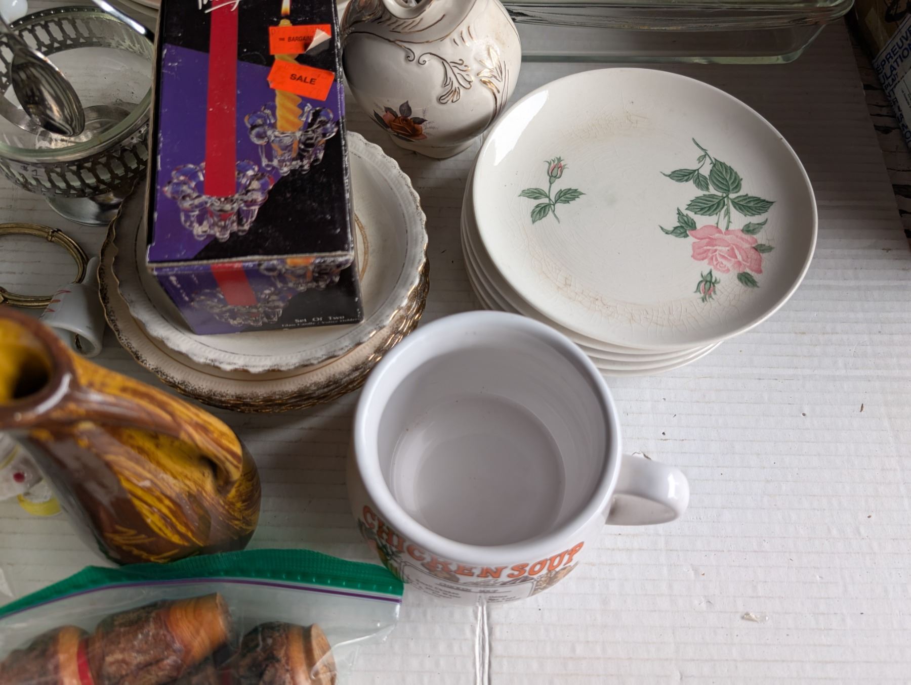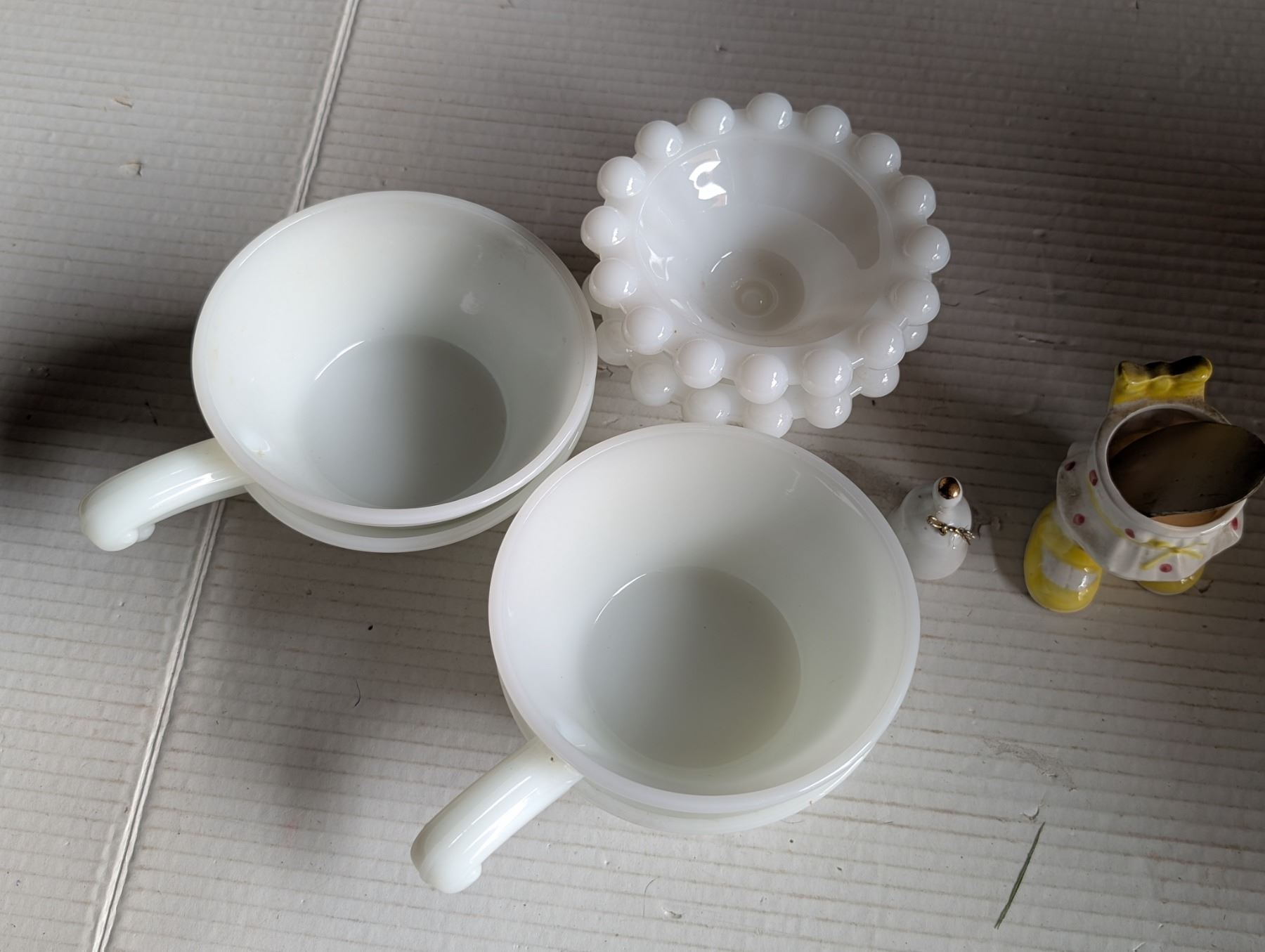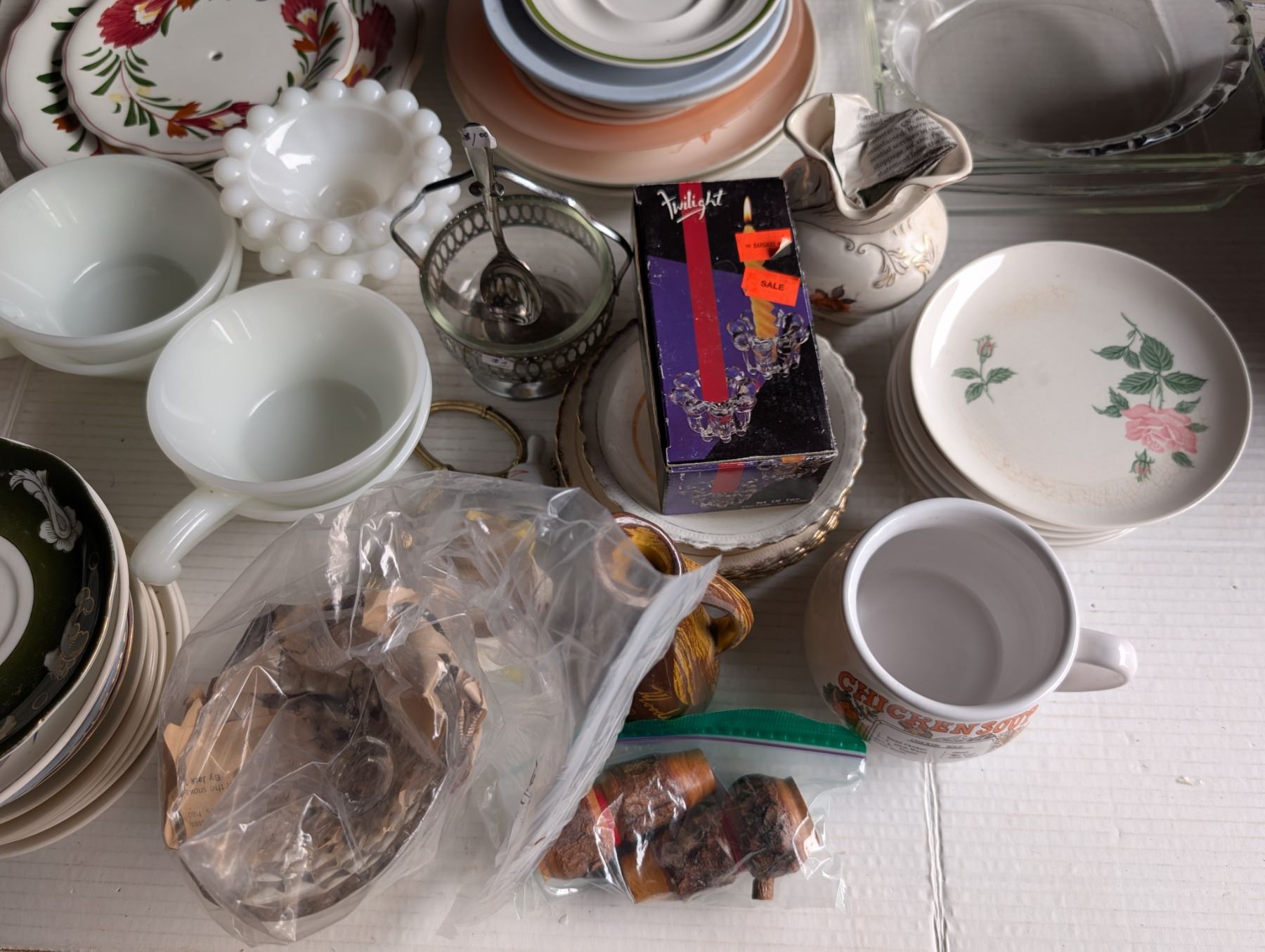 Vintage Recipe Soup Mug and Extra Misc. Dish Items (Pyrex, milk glass, and etc.,)