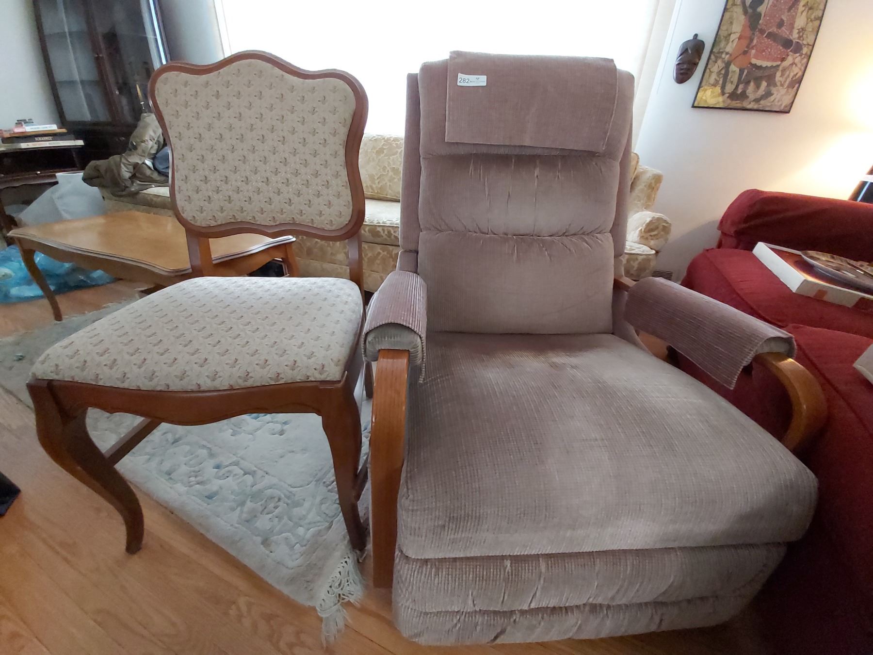 Vintage Reclining Rocking Chair & Wooden Chair