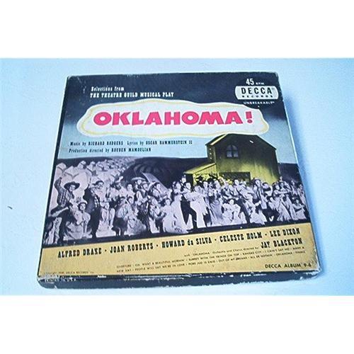 This is a box-set of six records. Selections from the Theater Guild Musical Play, OKLAHOMA! Music is by Richard Rodgers; Lyrics by Oscar Hammerstein, II; This set of records has the copywrite date of "1949". Execellent Condition. The box measures: 7 1/4 inches by 7 1/4 inches. A collectors item. 45RPM's. (Unbreakable) DECCA. A few of the songs: Oh, What a Beautiful Morning, Surrey With The Fringe On Top, Kansas City, People Will Say We're In Love, to name a few and of course the main one: OKLAHOMA! Music is by Richard Rodgers and features members of the original New York Production: Alred Drake, Joan Roberts, Howard Da Silva, Celeste Holm, and Lee Dixon. The Oklahoma Orchestra and Chorus directed by Jay Blackton. Notes on inside of the box are by Louis Untermeyer.