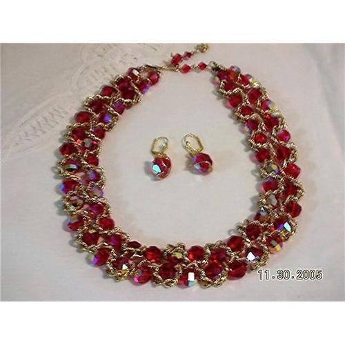 <tr><td>Title:Vintage Red Double Strand AB Demi Parure</td></tr>