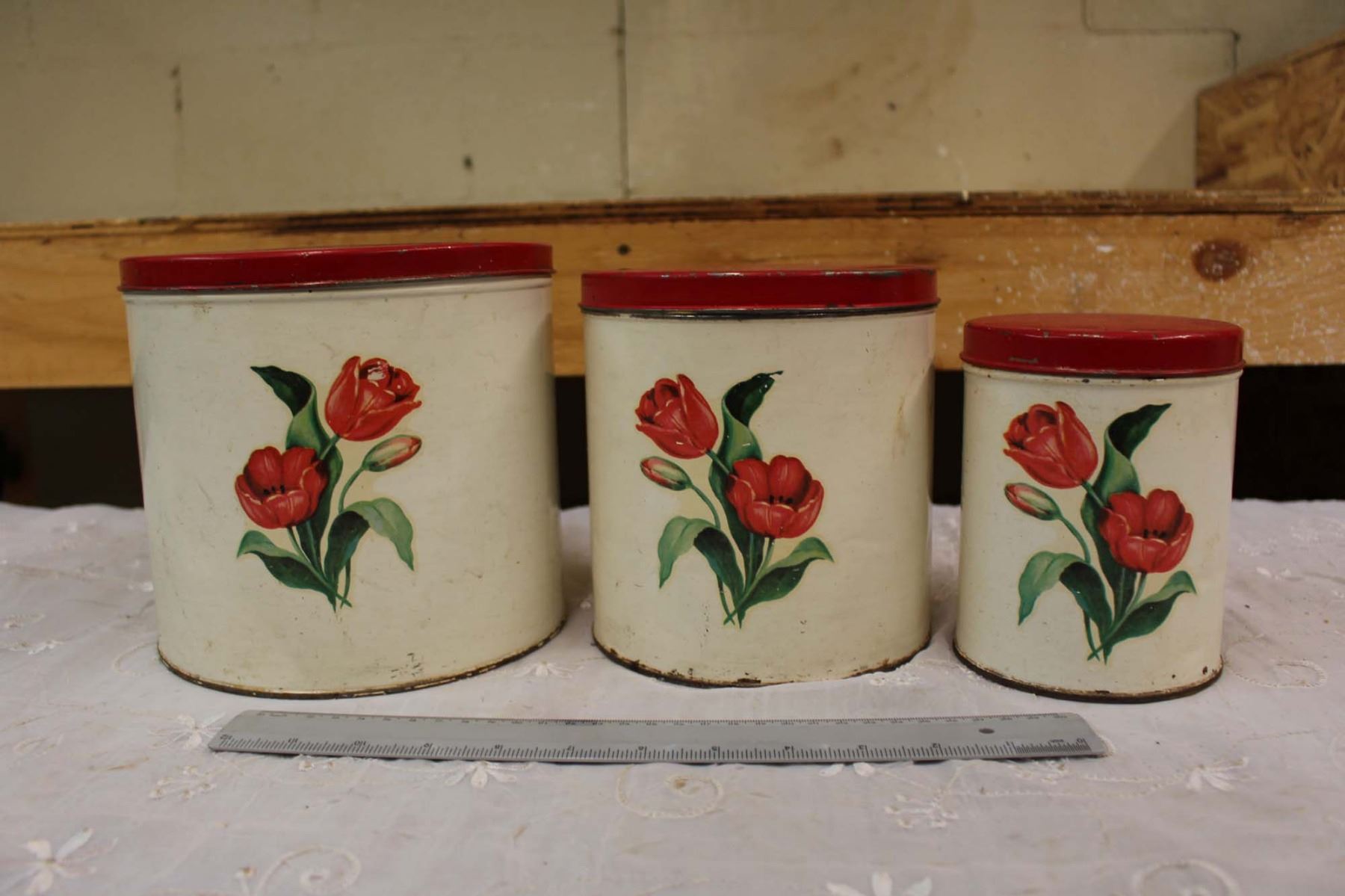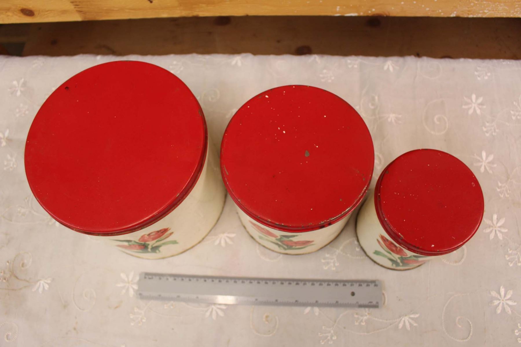 Vintage Red Floral Cannister Set (3 Pieces)