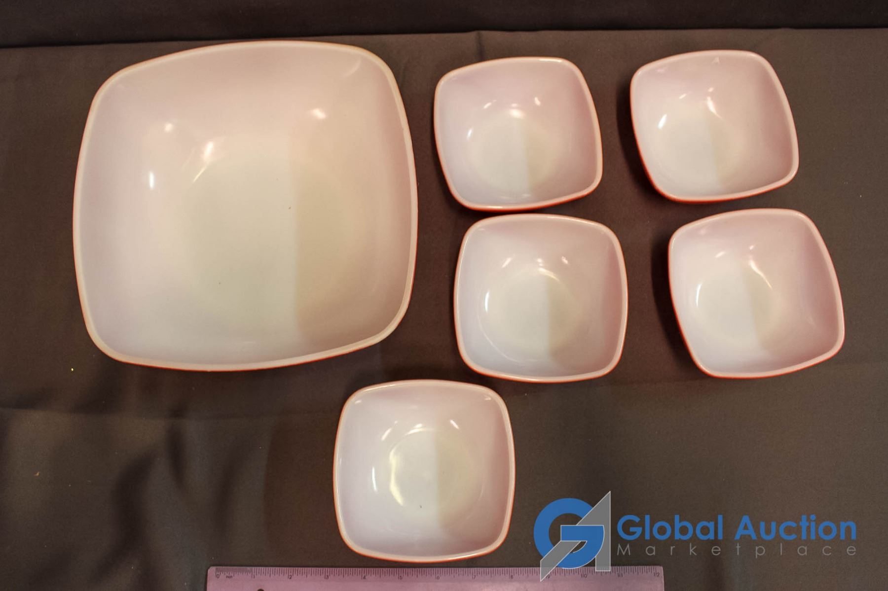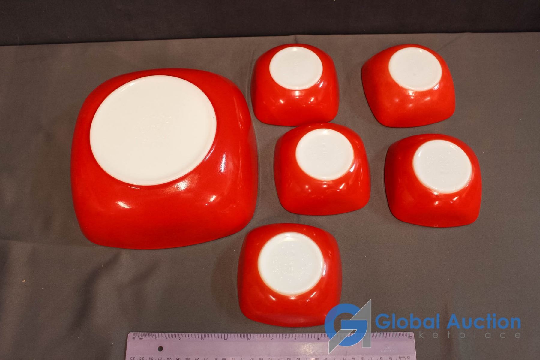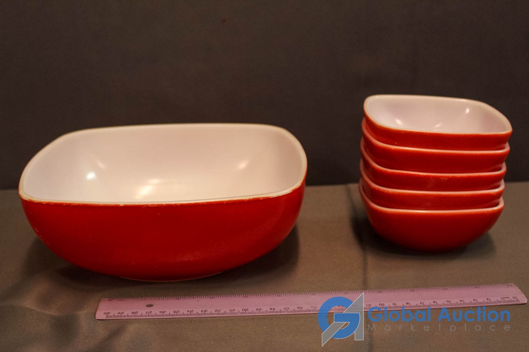 Vintage Red Square Pyrex Serving Bowl w/ 5 Square Dessert Bowls
