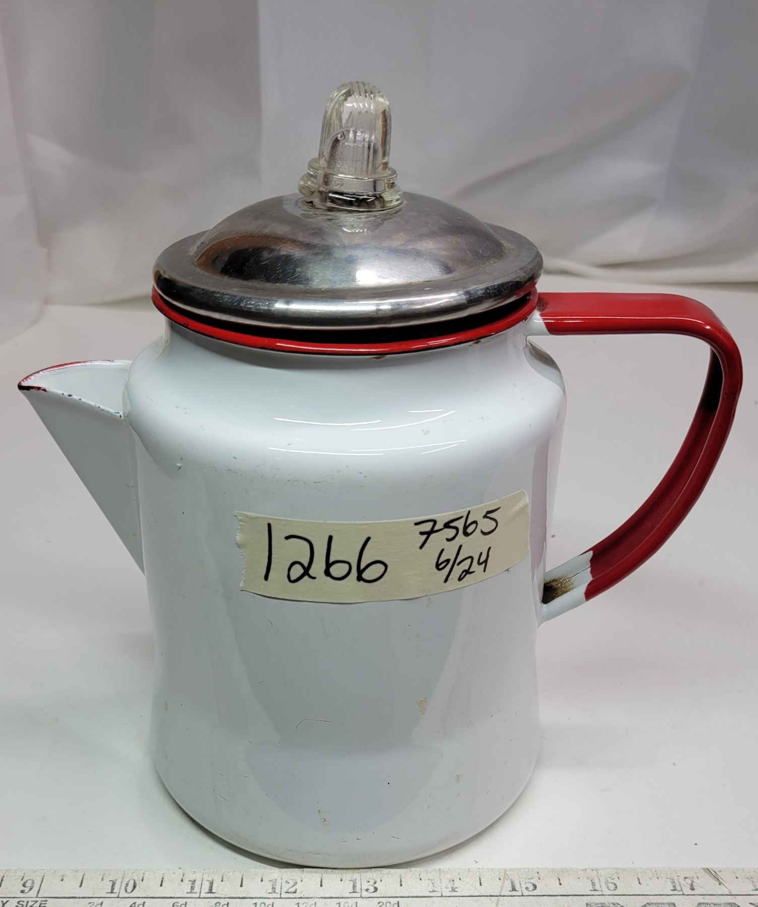 Vintage Red & White Enamel Coffee Pot