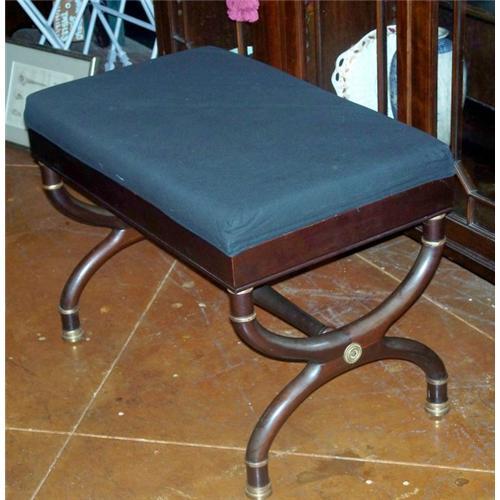 Very attractive and functional bench in the English Regency style, in very fine condition. The seat is upholstered in a black twill or similar.