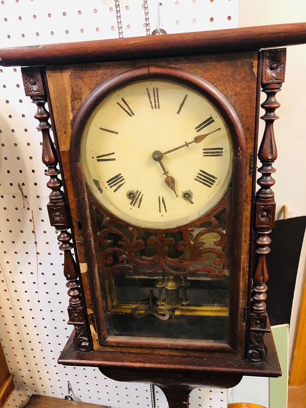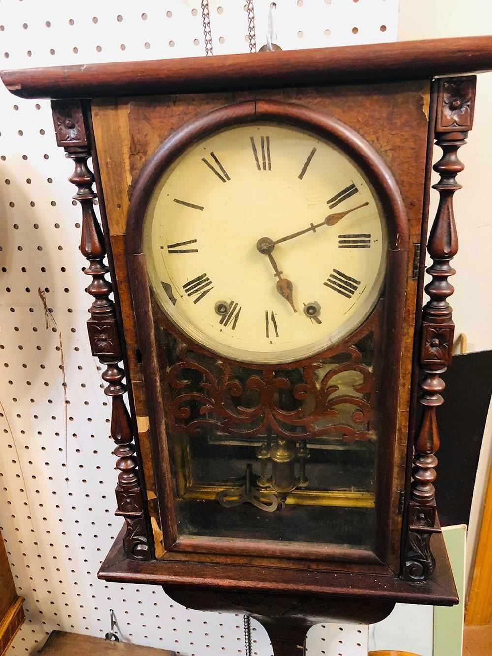 1860s Gothic Style Regulator Clock with beautiful pendulum.