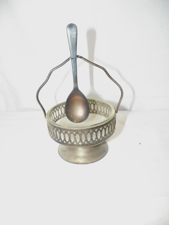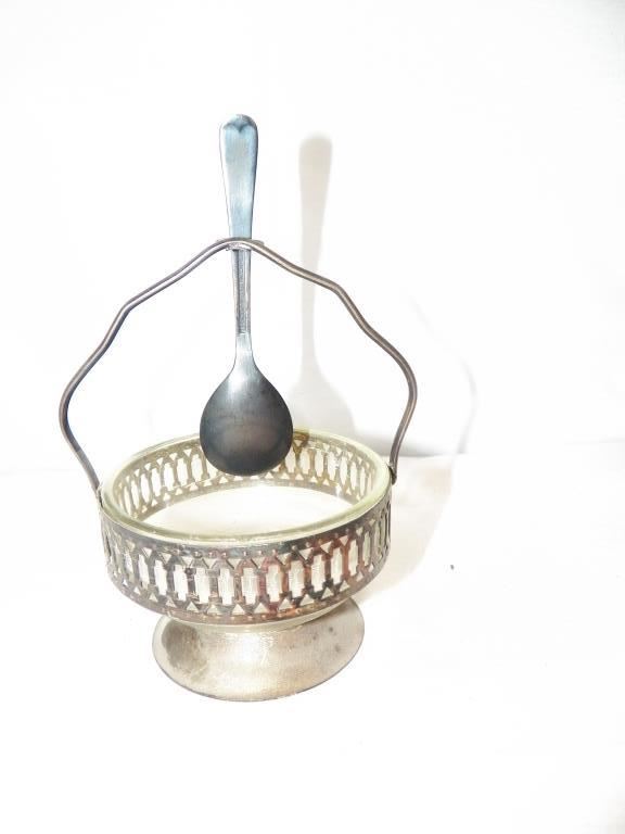 Glass Petal Relish Dish With Chrome Holder & Spoon Set