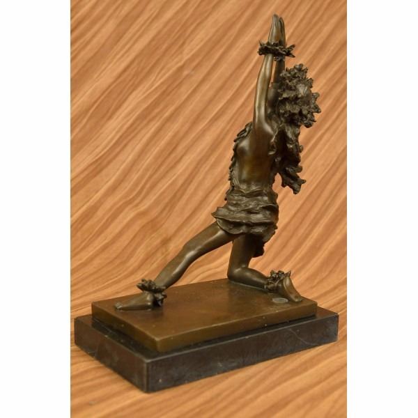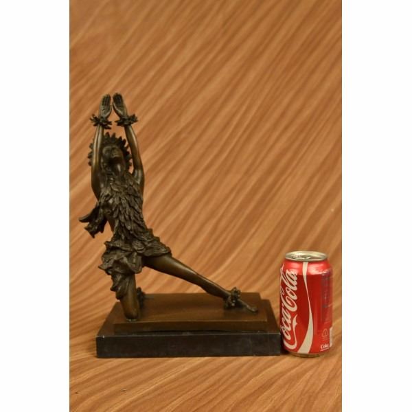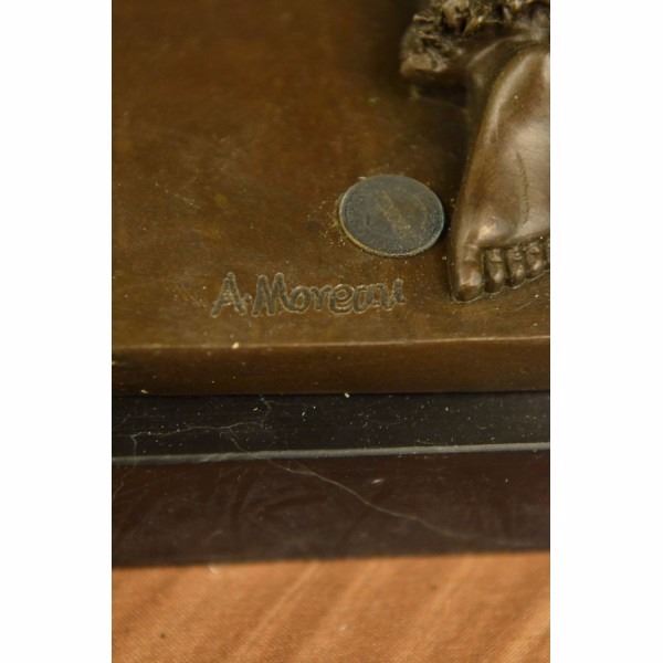 Inspired by the Islands and modeled after local Hula Dancers. These exquisite works of art are the perfect addition to any home. Each piece is made from a 100% Real bronze and is signed Moreau. Stunning detail captures the true essence of the art of ancient hula movements. Accented with color and intricate detailing. Truly an heirloom piece that can be handed down from generation to generation. Condition: This sculpture is in perfect condition. Bronze Dimensions with Marble Base:Height 13" x Width 9" Marble Dimensions: 9" X 5 1/2". Height without base: 12" Weight : 12 LBS