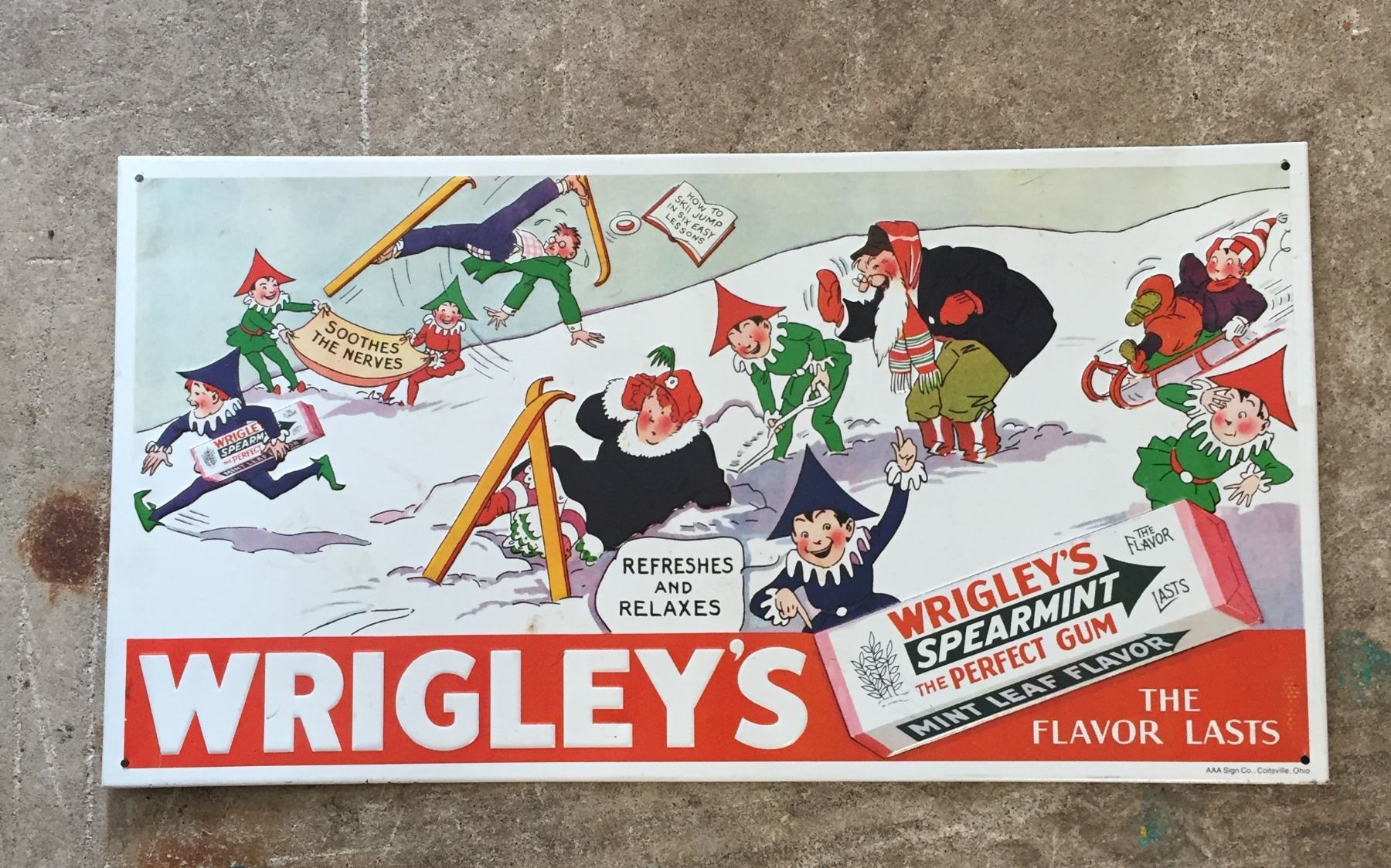 Vintage Reproduction Wrigley's Spearment Gum Embossed sign. 18"wx9.5"H