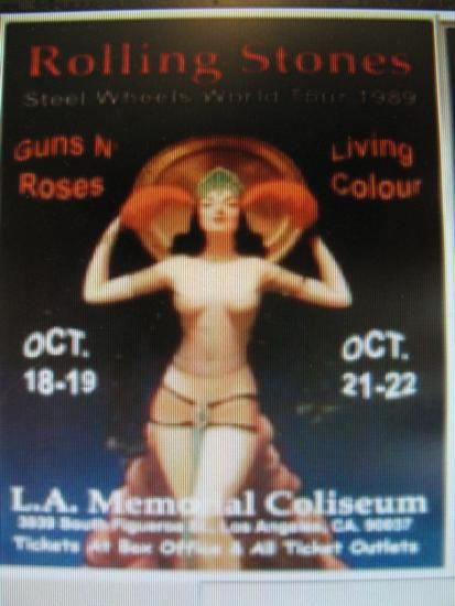Beautiful and colorful Vintage Reproduction of the Rolling Stones Concert Poster.L.A. CollesiumVintage poster difficult to find model looks topless. If you love the Stones you will love this Concert reproduction poster.poster is 12x18 in. in frame 18x24 in.