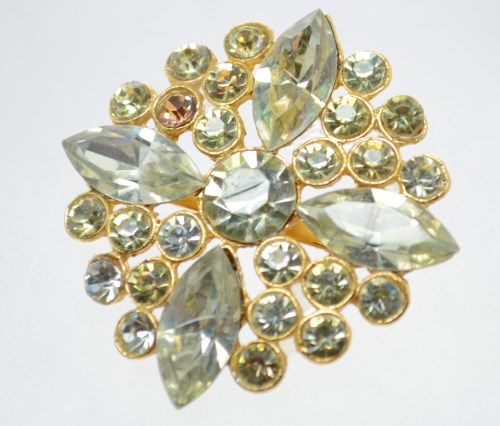 Vintage Rhinestone Brooch. Pale greens and yellows.
