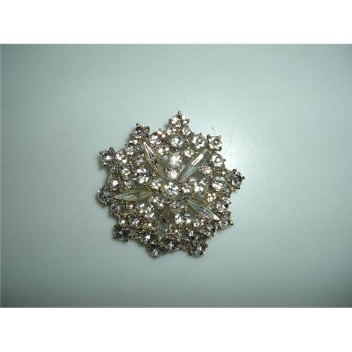 This beautiful Rhinestone Brooch has 3 different size and shape Rhinestones. It measures 2-1/4" in diameter. The Rhinestones are bright and the pin is in excellent condition.