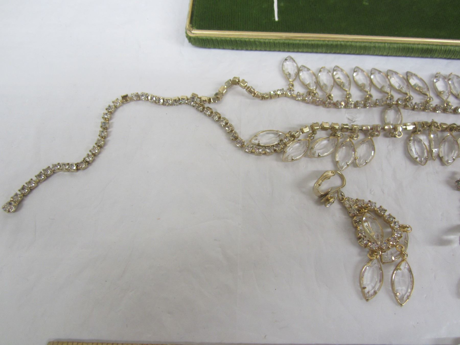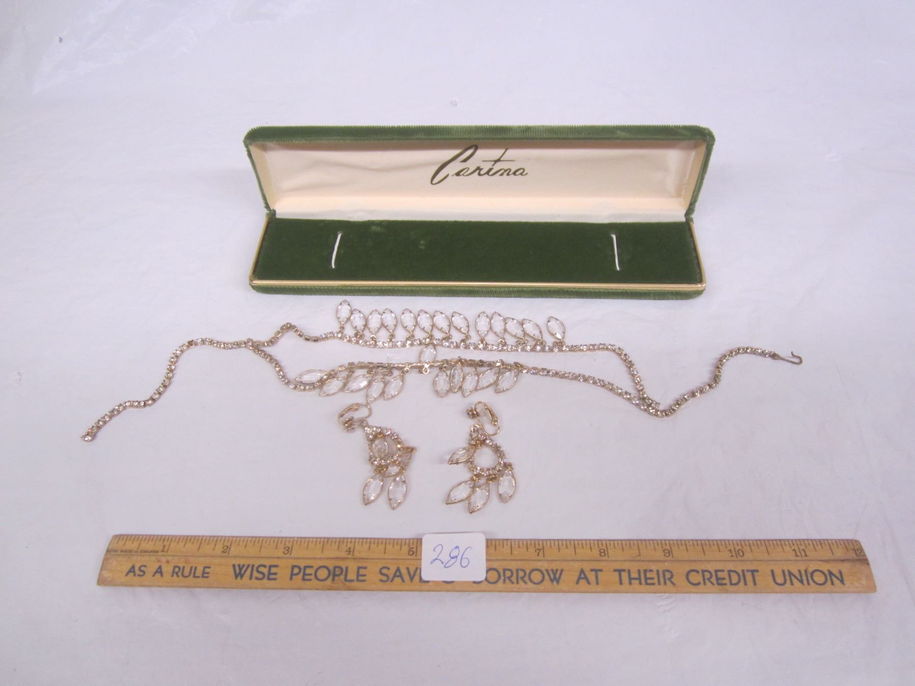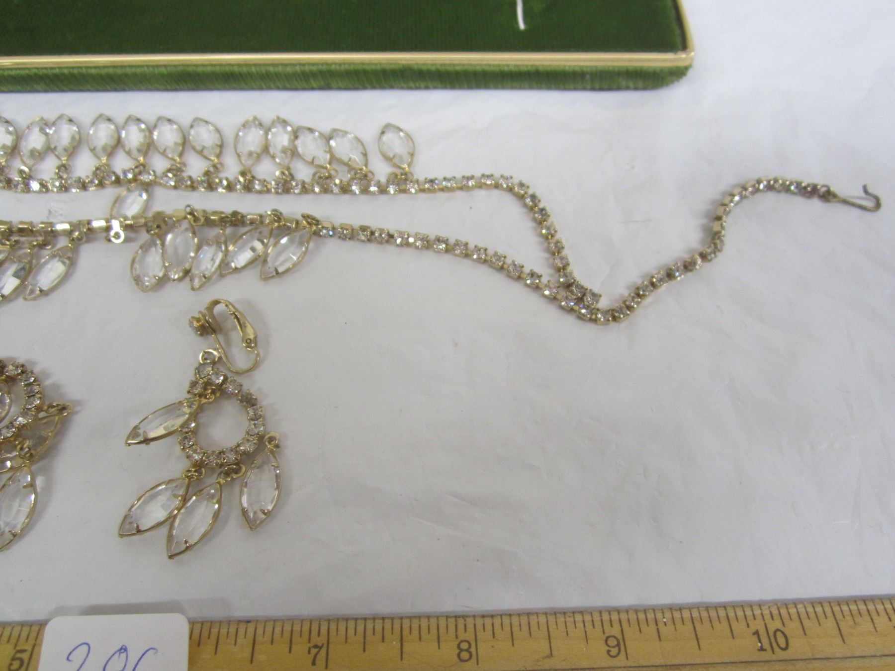 Vintage Rhinestone Necklace and Ear Ring Set with Display Box