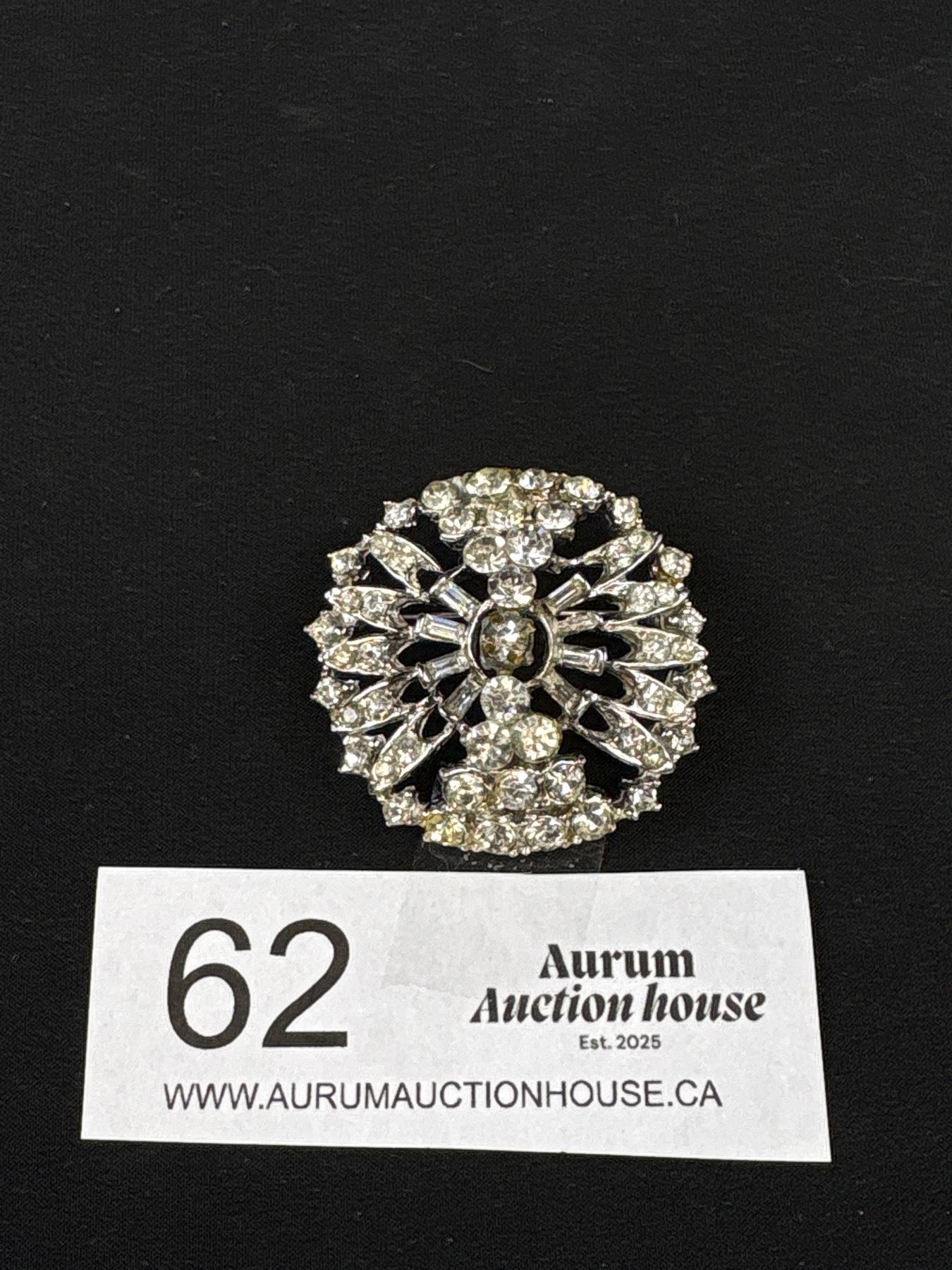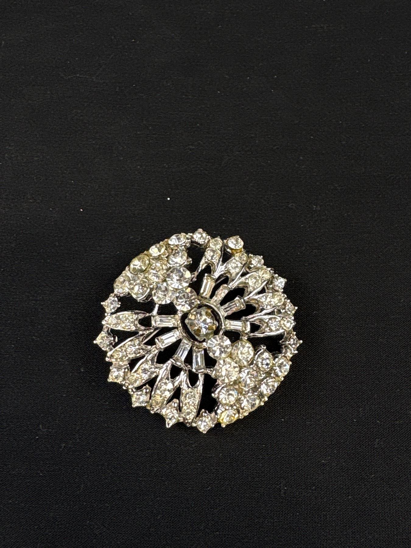 Vintage Rhinestone Starburst Silver Tone Brooch