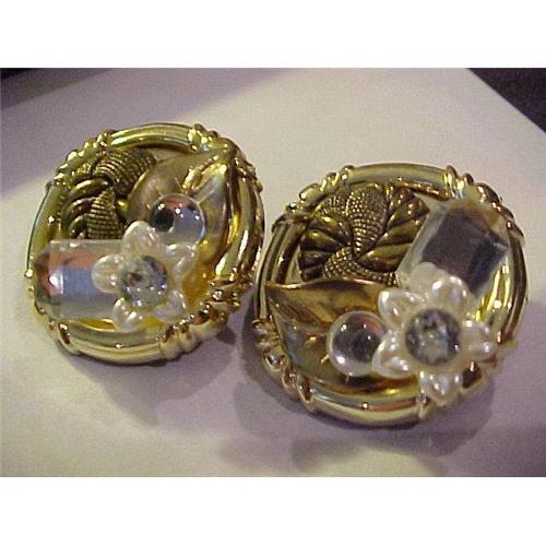 <tr><td>Title:Vintage Rhinestone and Cabochon Clip Earrings</td></tr>
