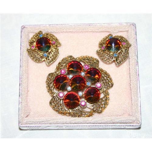 <tr><td>Title:Vintage Rivoli Rhinestone Brooch/Earrings </td></tr>