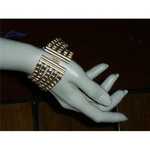 A vintage wide gold Rolo link bracelet made with five strands of heavy gold chain. This item is unmarked.