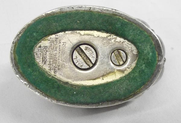 Vintage Ronson Cigarette Lighter. Very heavy, measures approx. 2 1/2''H x 3''L x 1 3/4''W. Mechanism slightly stiff, no flint. Buyers Pay Actual Shipping and Handling Charges(see terms and conditions for more information).