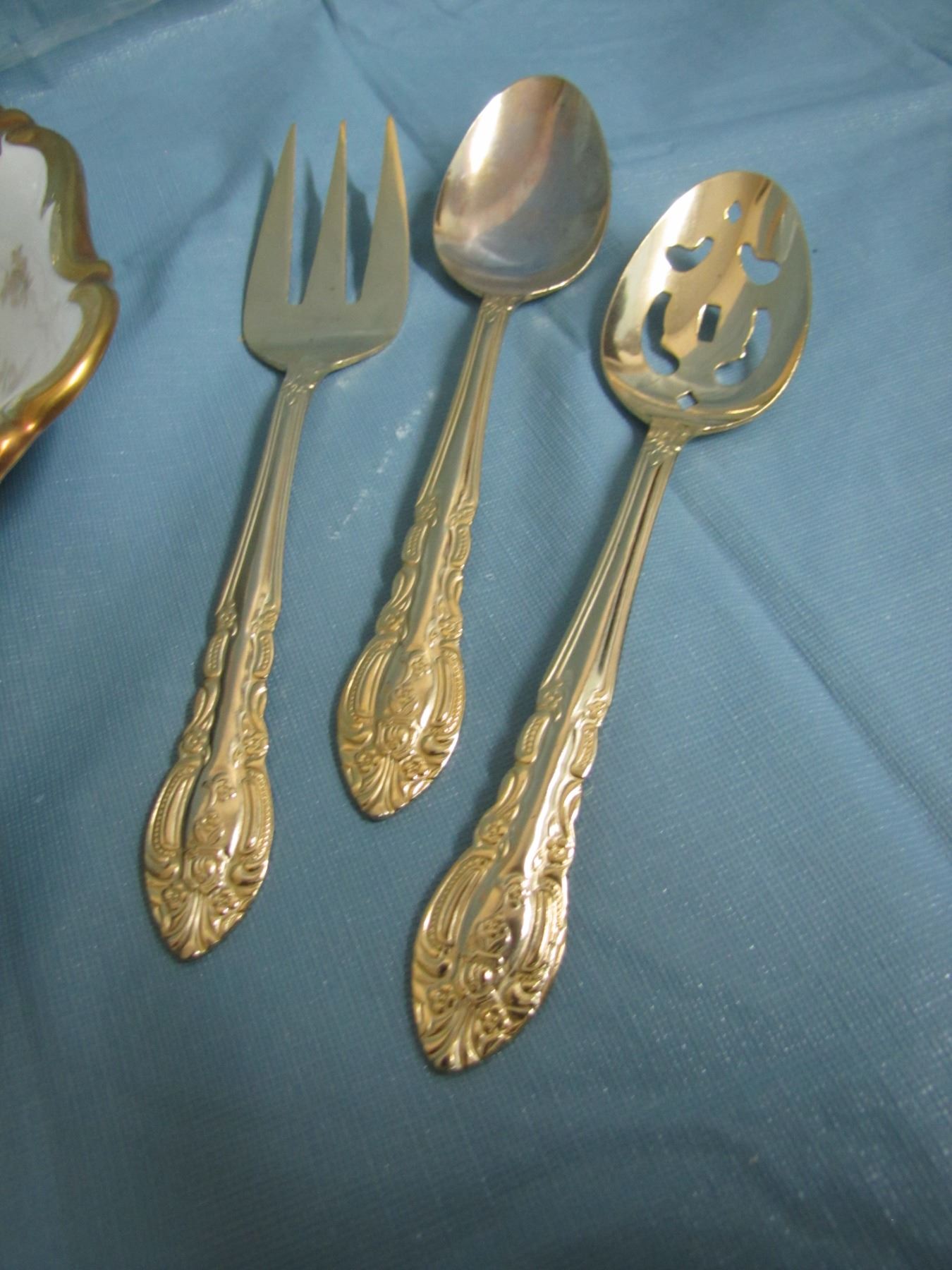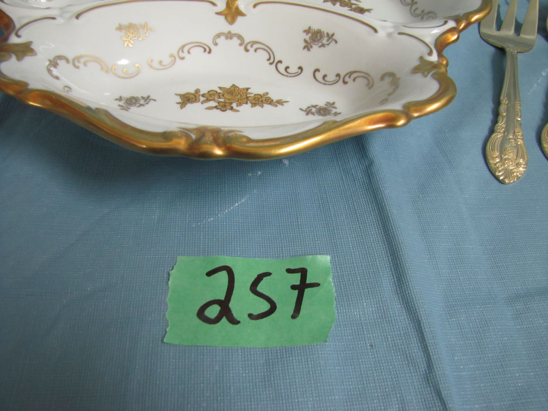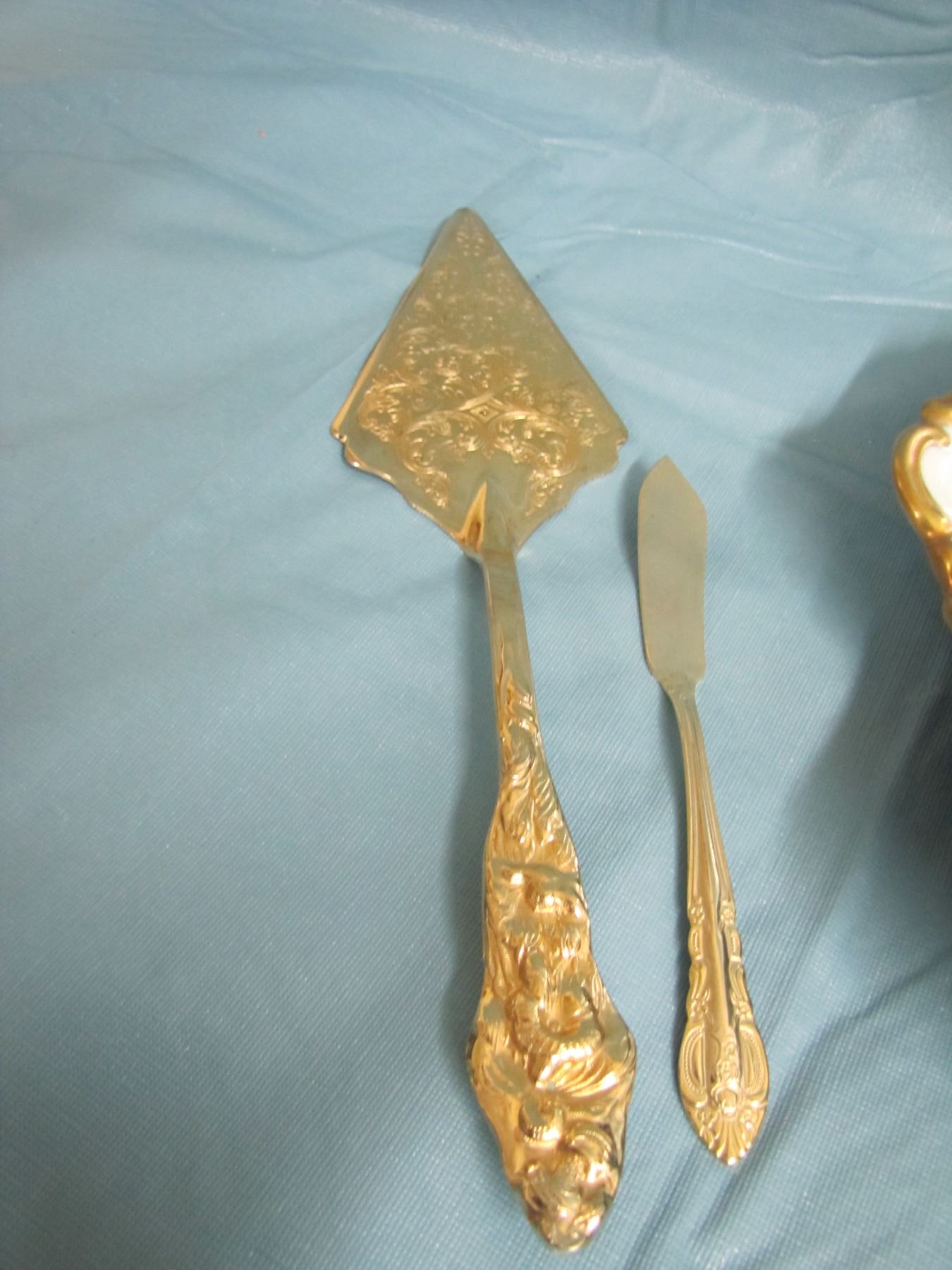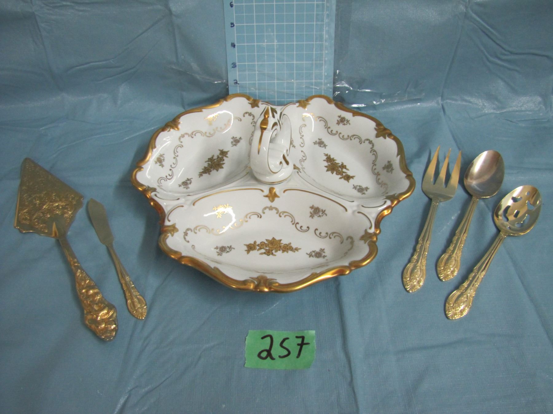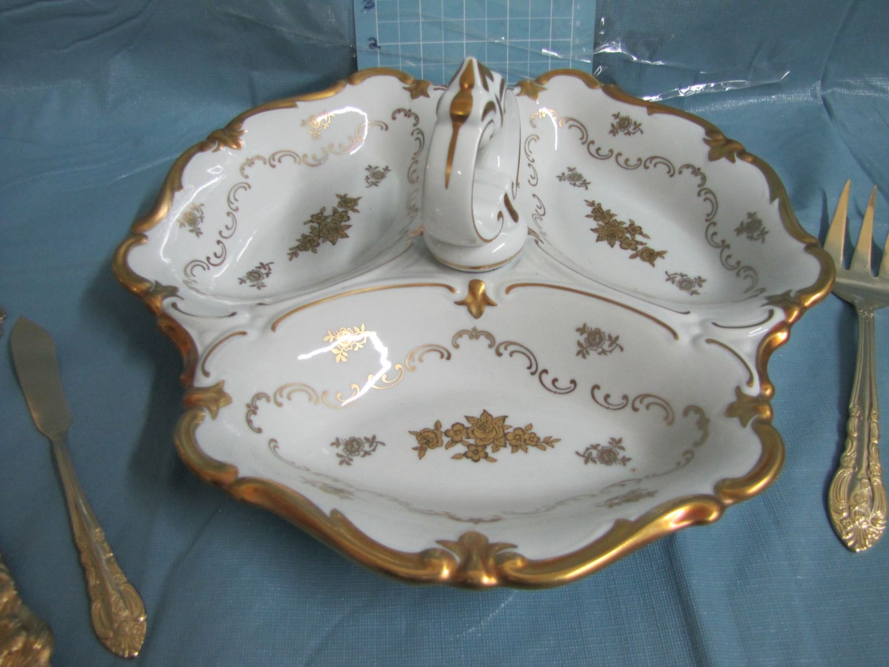 Vintage Rosenthal fine China made in Germany three compartment dish - Gold trimmed , And serving fork, spoons and cake server