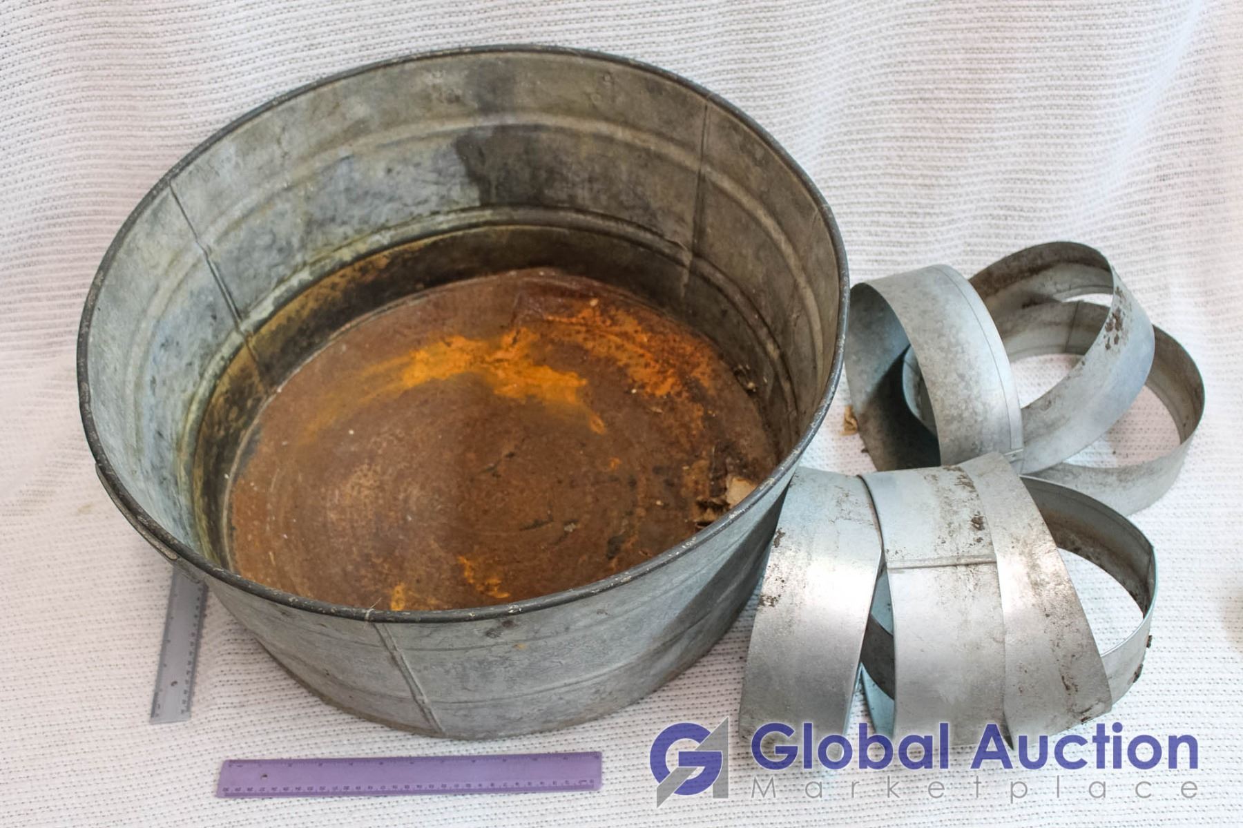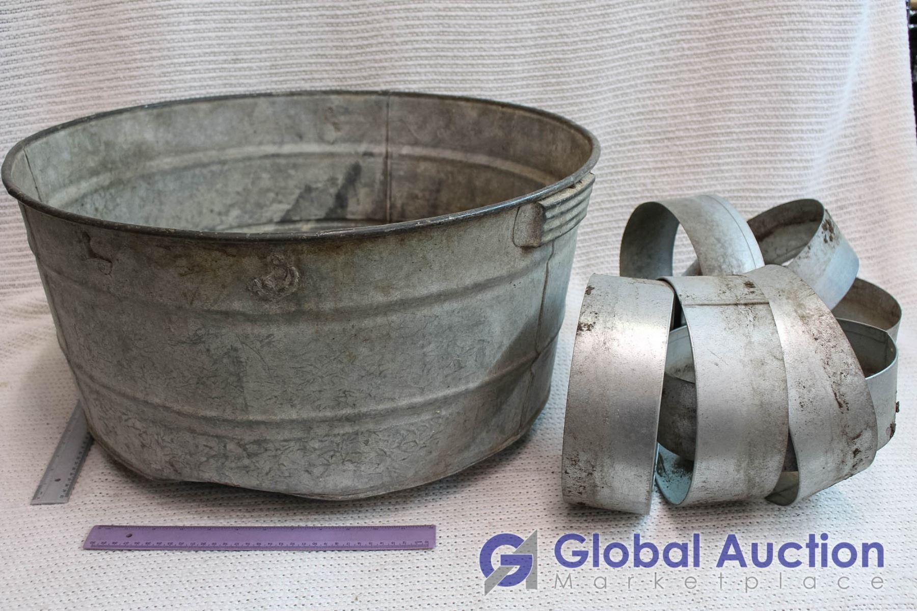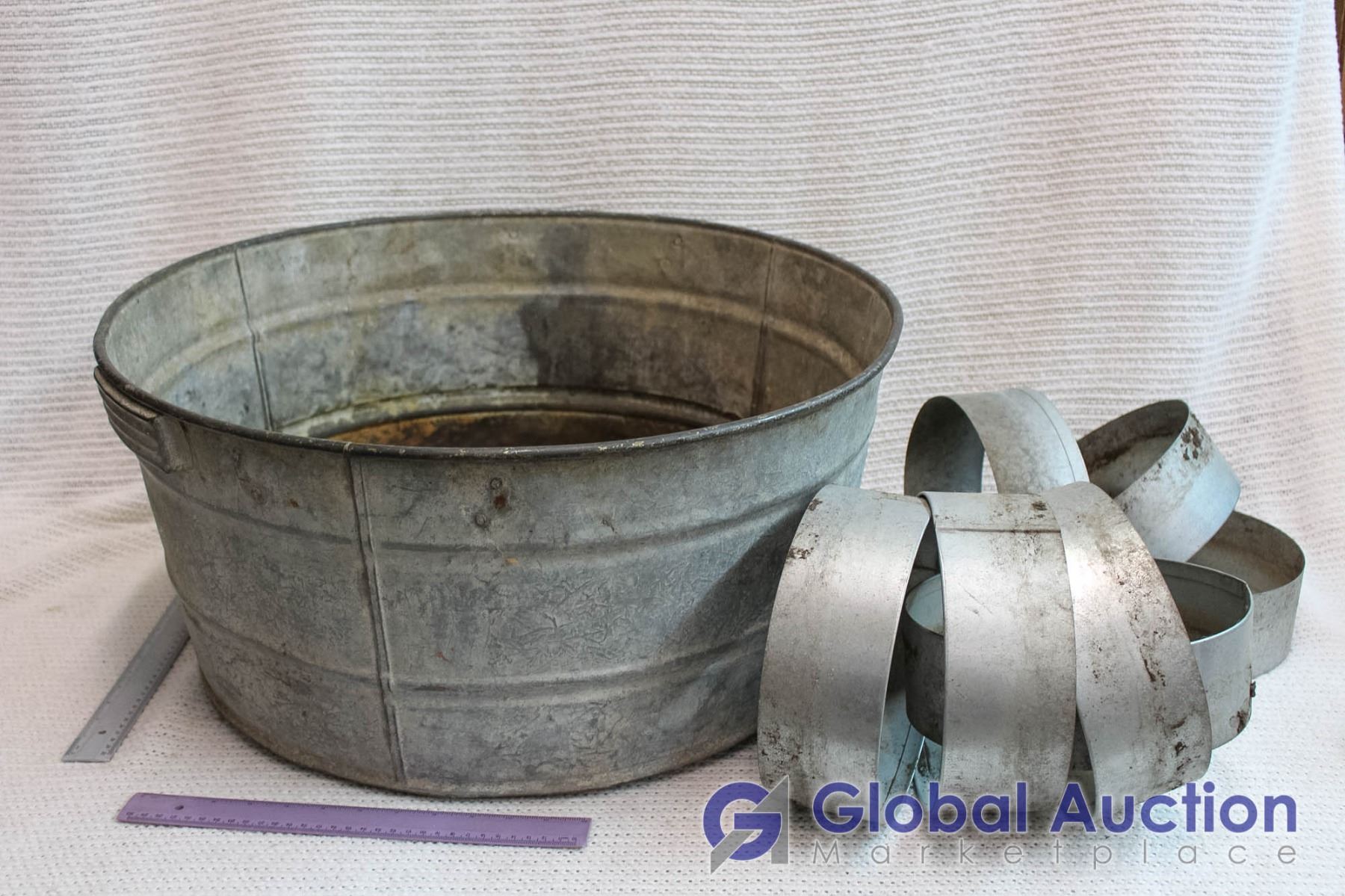 Vintage Round Galvanized Tub with 7 Small Galvanized Rings