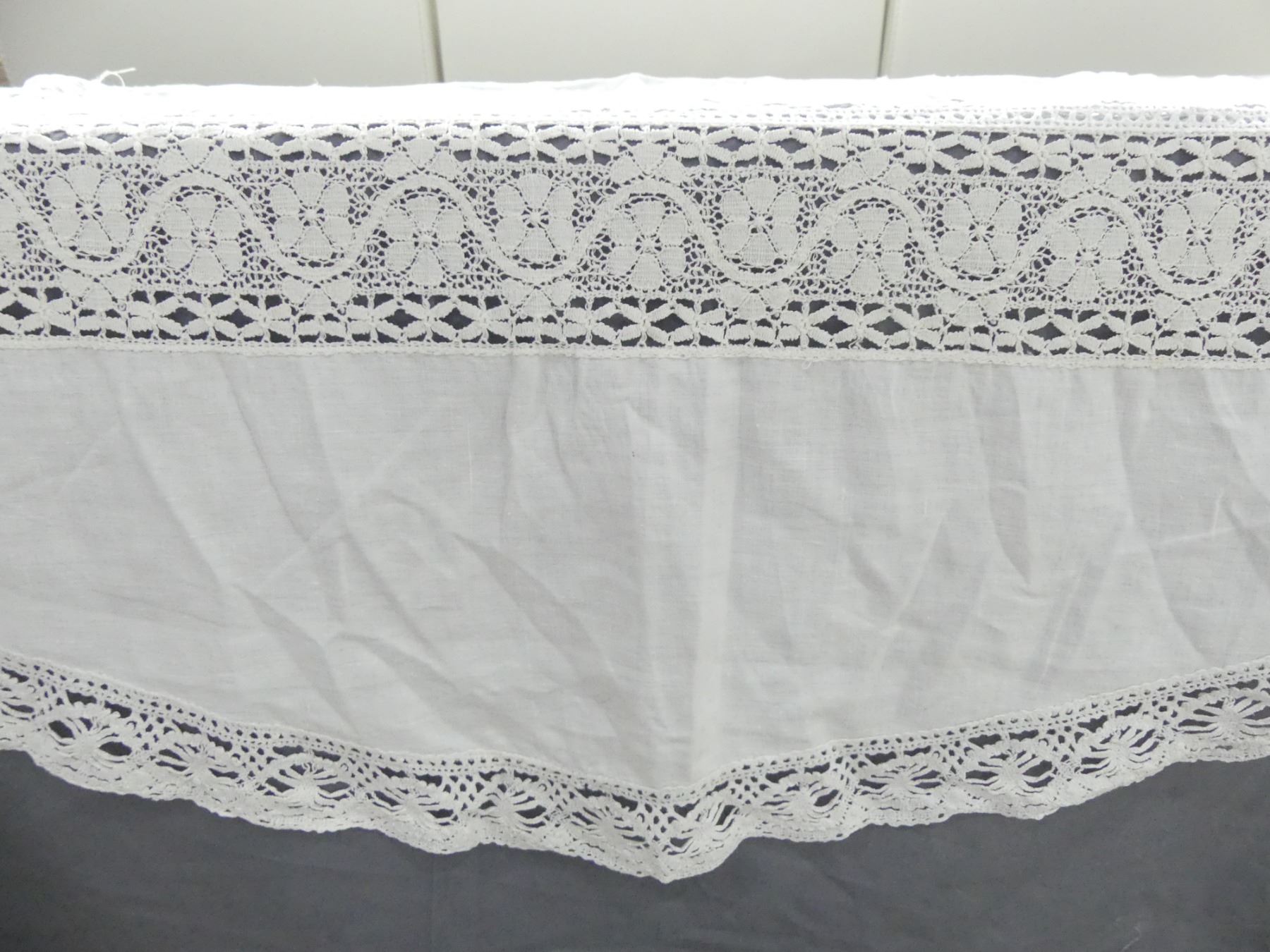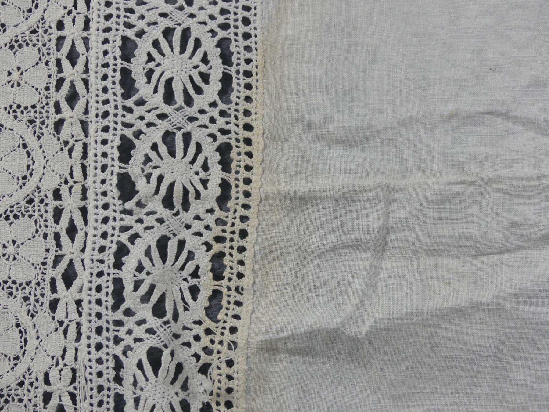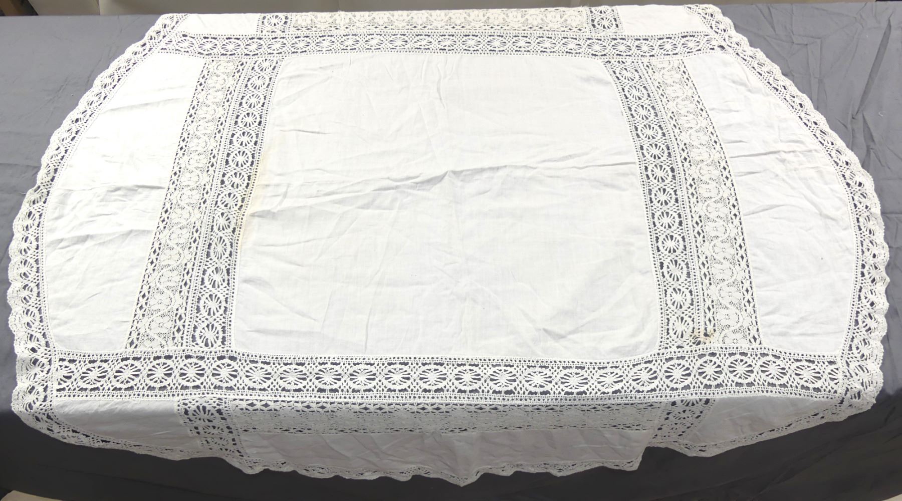 Vintage Round Linen, Lace & Fine Crochet Tablecloth