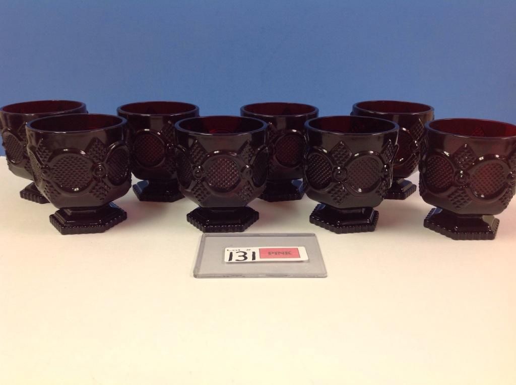 Vintage Royal Ruby Red Avon Cape Cod Pattern Footed Glass set. (8) Glasses in all for one money
