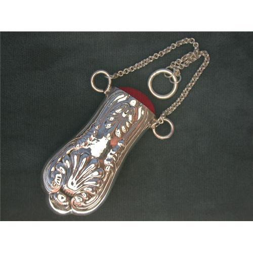 Antique Style STERLING Silver pin cushion, looks like a Flower Vase with a Red velvet top.