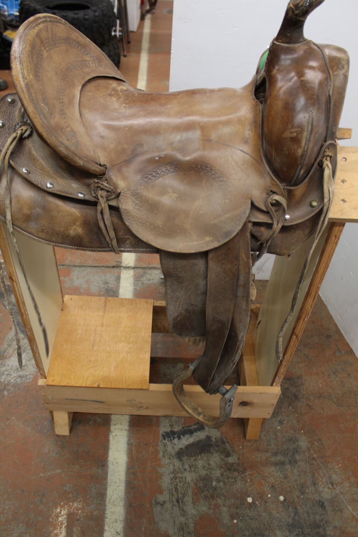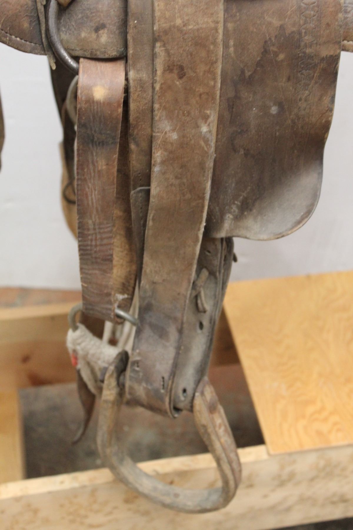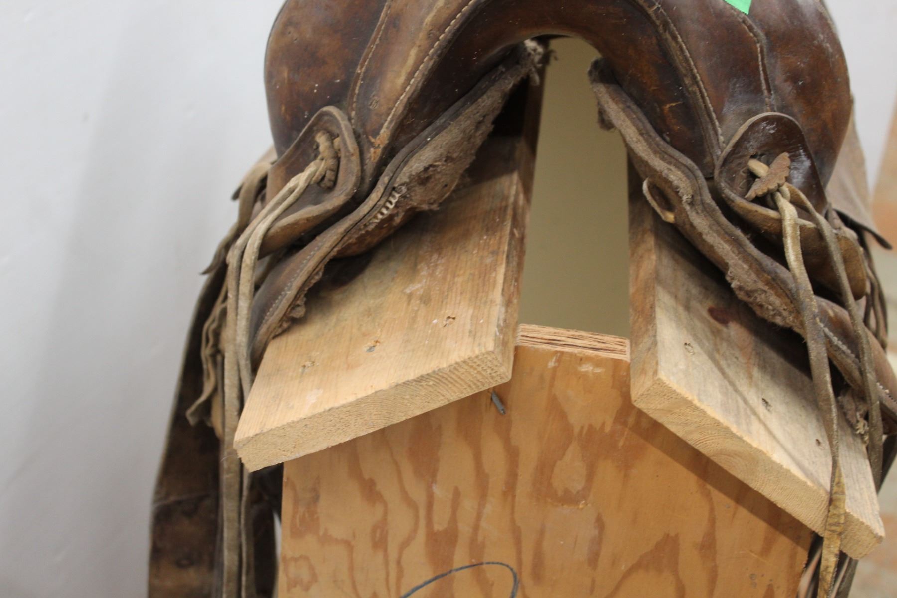 * Vintage Saddle - 14.5" Seat, 5" Gullet, Rawhide Covered Wood Tree, Single Rigging, Needs Repairs w