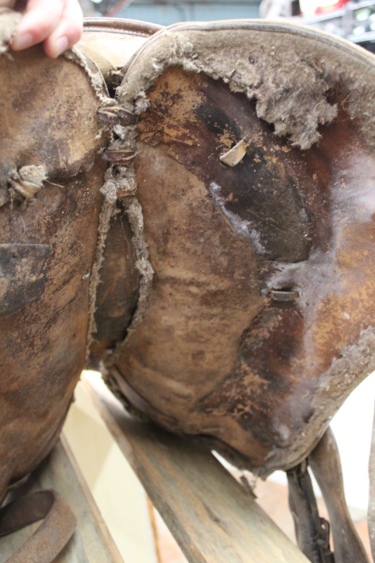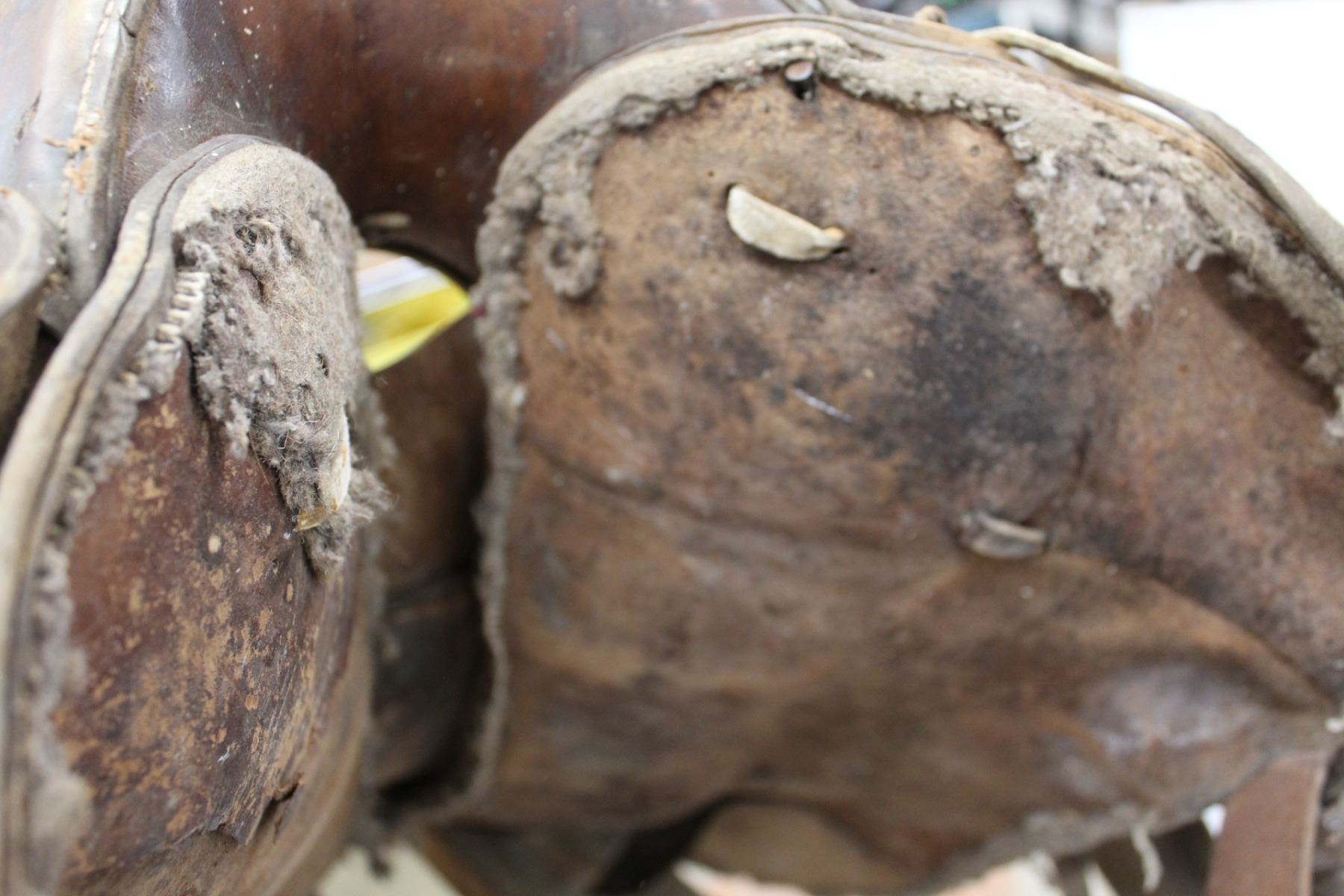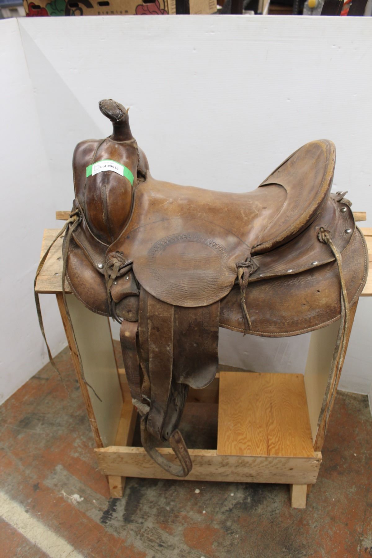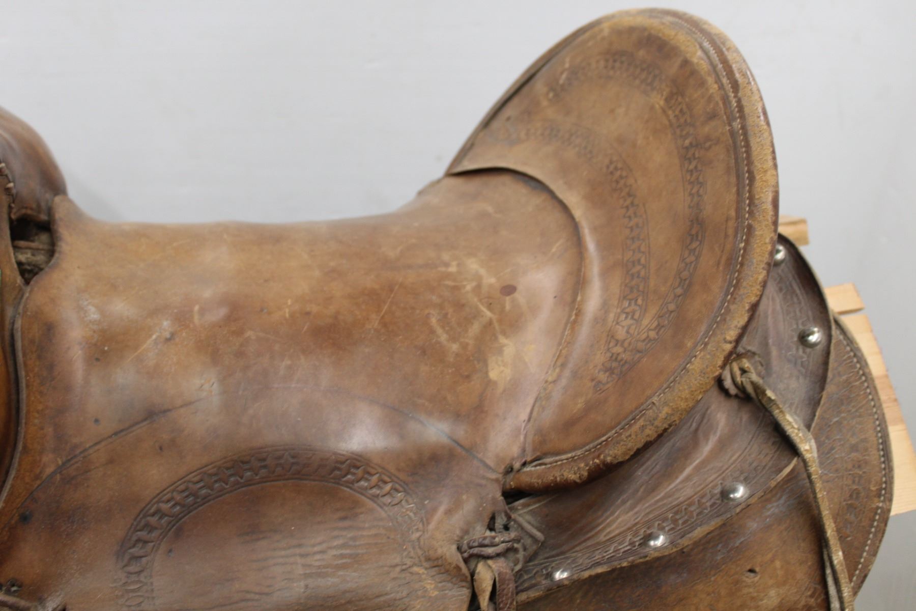 * Vintage Saddle - 14.5" Seat, 5" Gullet, Rawhide Covered Wood Tree, Single Rigging, Needs Repairs w