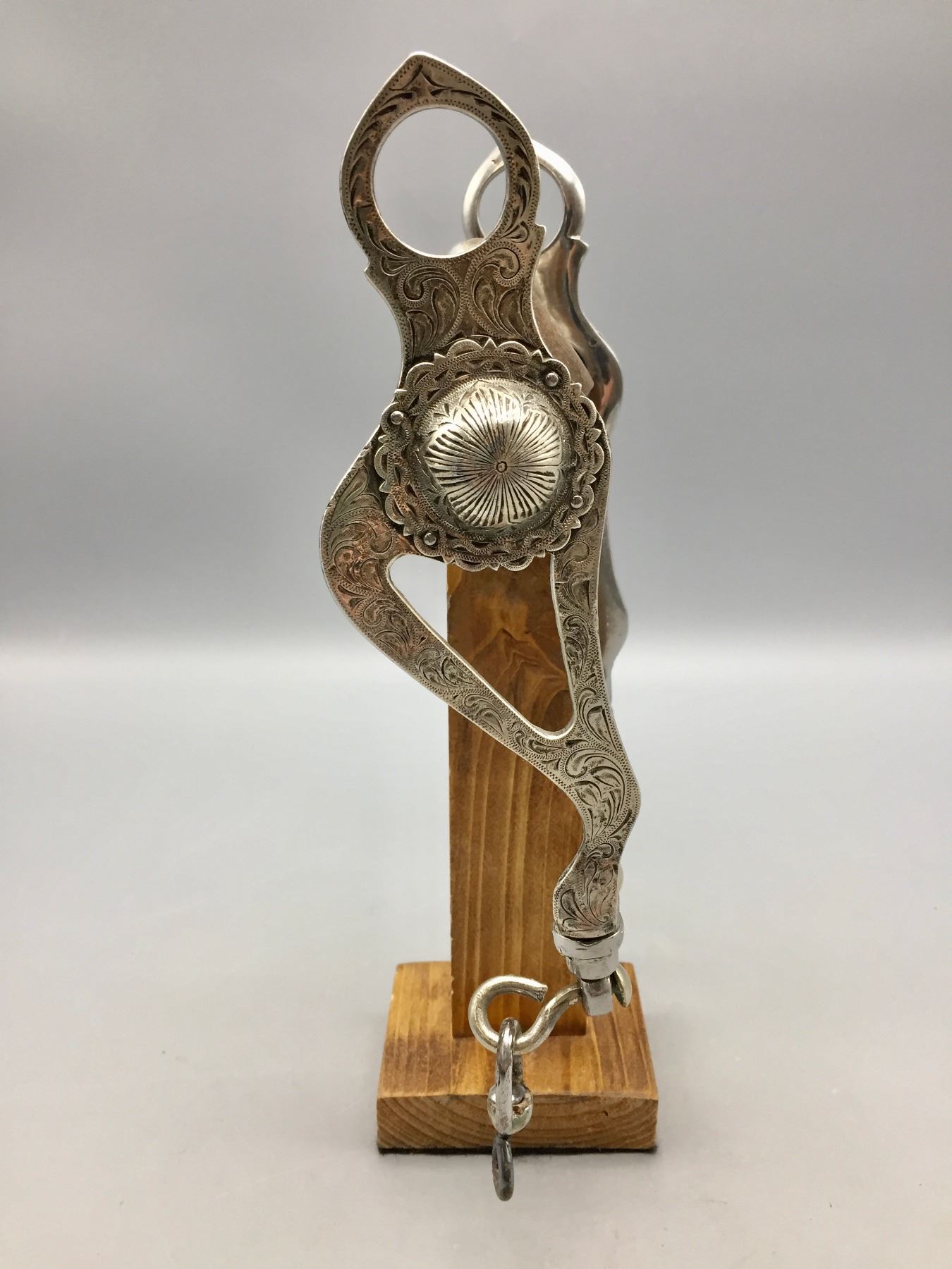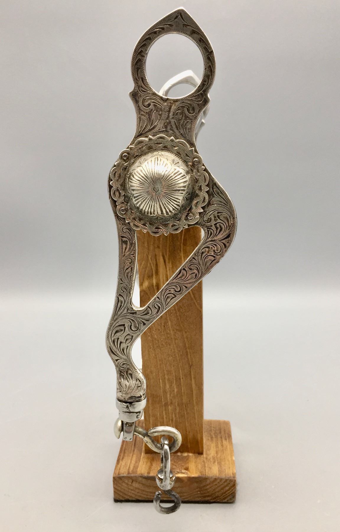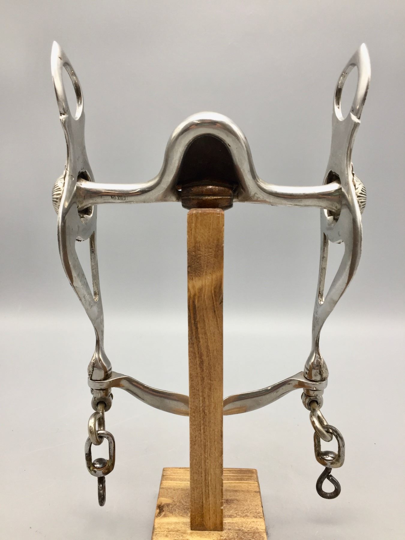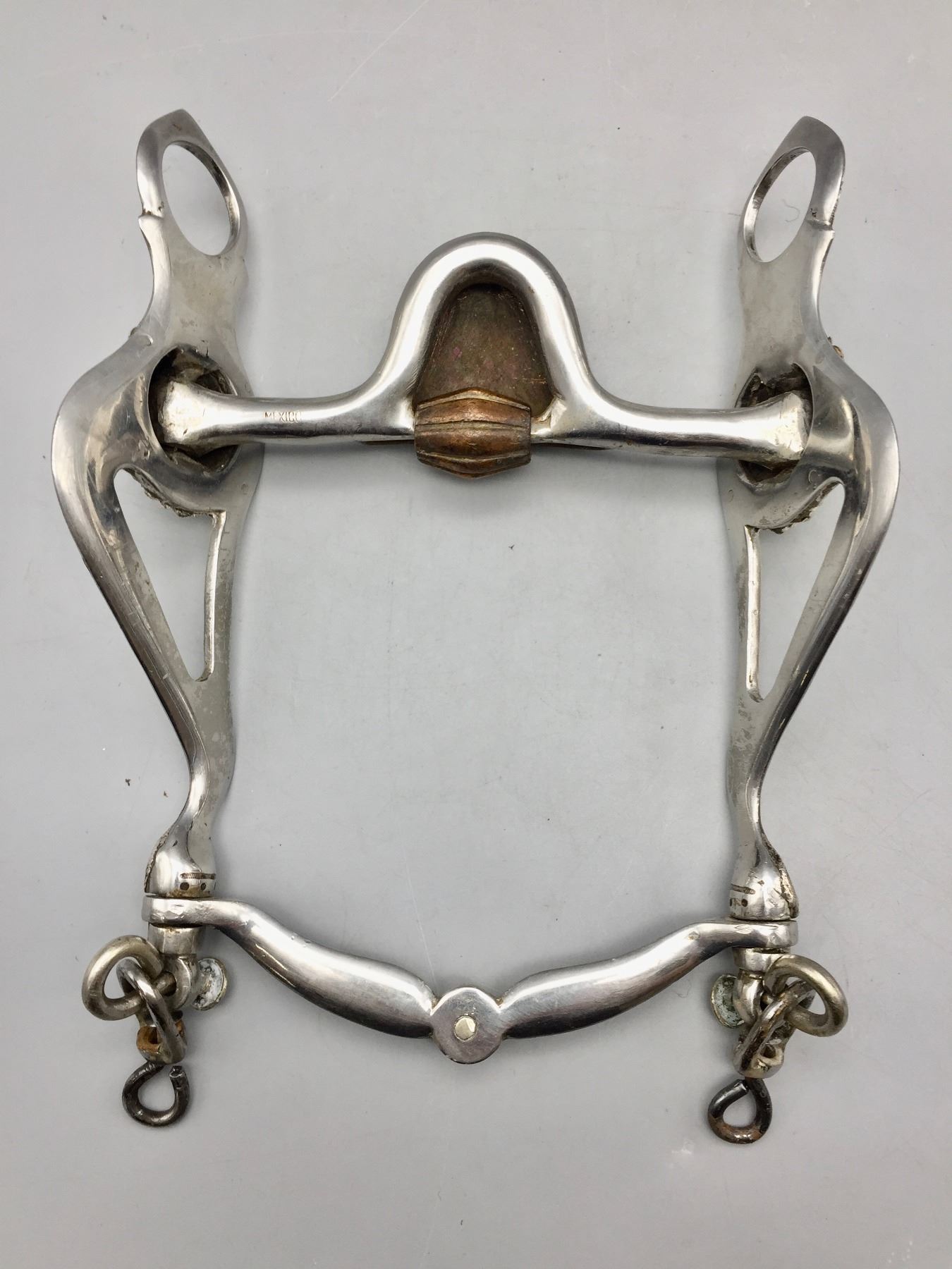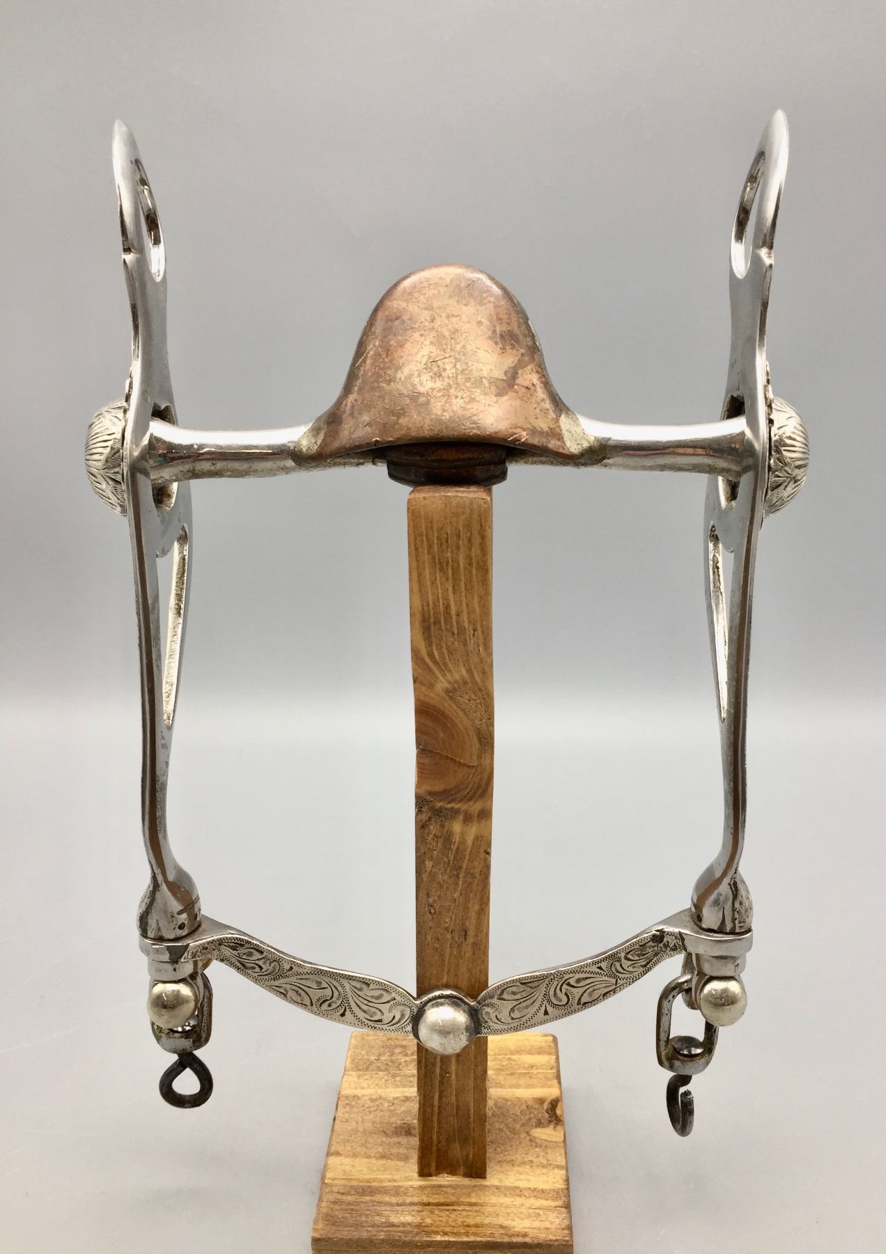 Description: Featured for sale in this lot is a vintage Salinas port bit. This bit features a solid copper hooded curb port and an engraved design throughout. Maker: Unknown. Approx. Age: Vintage. Size: Mouth 5”, shank 8-1/4”. Condition: Good for its age, normal wear expected. Please look closely at the pictures - they are an important part of our description. Shipping: There will be a $5 handling / packaging fee for shipping this lot. The actual cost of postage will be added on top of that.