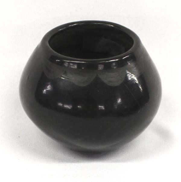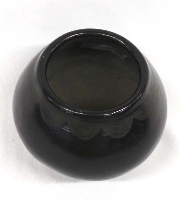 Vintage Native American San Ildefonso Pottery Jar by Donicia Tafoya (1912-1979), signed on the bottom and measures 3.25'' x 4.25'', black on black scalloped designs around rim, ''D. Tafoya San Ildefonso'', nice thick walled traditional piece, FYI: ''Donicia Tafoya was originally from Santa Clara Pueblo, but moved to San Ildefonso when she married.''