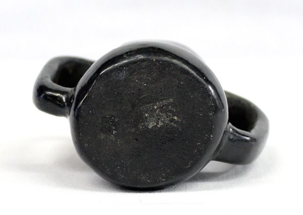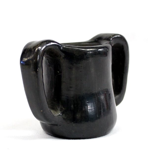 Vintage Santa Clara Double Handled Vase, classic black burnished pottery measuring 2.75in H x 4in W
