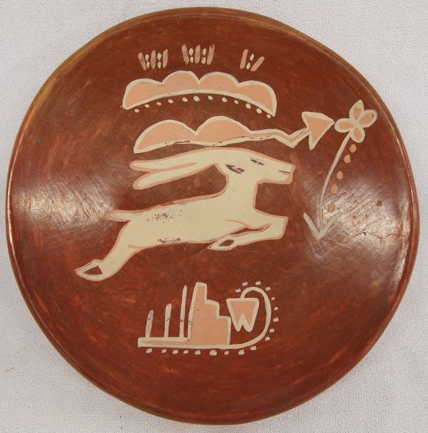 Vintage Santa Clara Polychrome Pottery Plate, measures 1.25''H x 6''W, thick walled