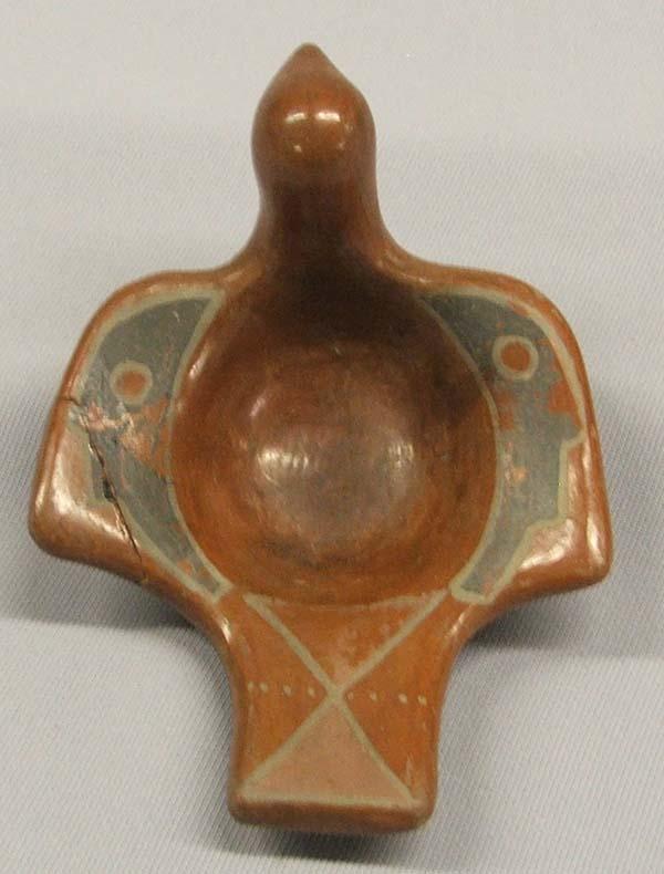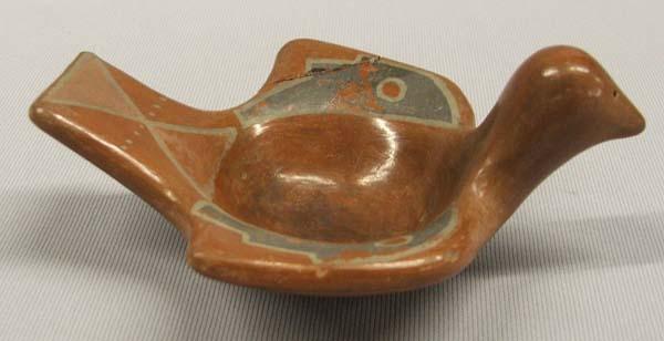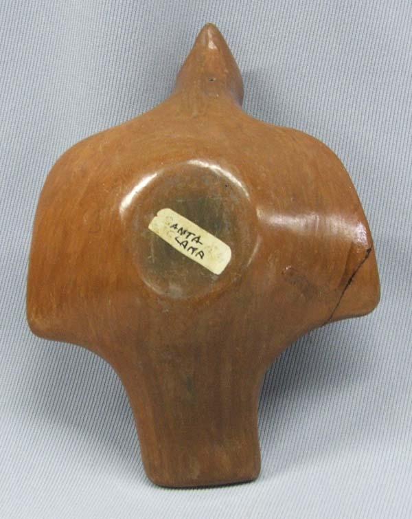Vintage Santa Clara Pottery Bird, measures approx. 2'' x 5'' x 3 3/4''. One wing has been glued. SHI $25.