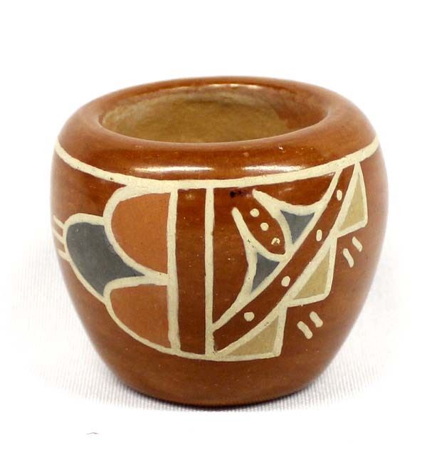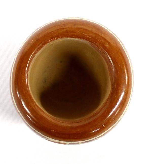 Vintage Native American Santa Clara Pottery Jar by Celestina Naranjo (1912-1999), signed on the bottom and measures 2.5'' x 2'', nice thick walled piece, FYI: ''Celestina is known for her redware and polychromes as well as blackware bowls and plates. Active starting around 1930.''