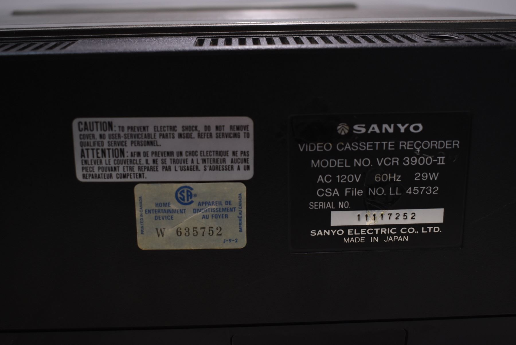 Vintage Sanyo VHS top loader video cassette recorder