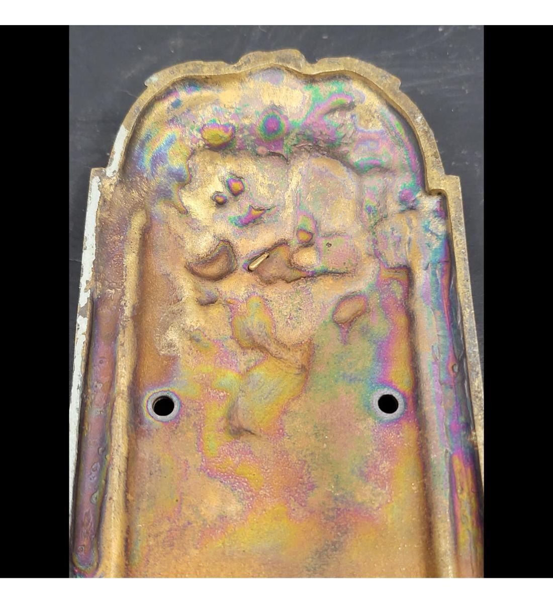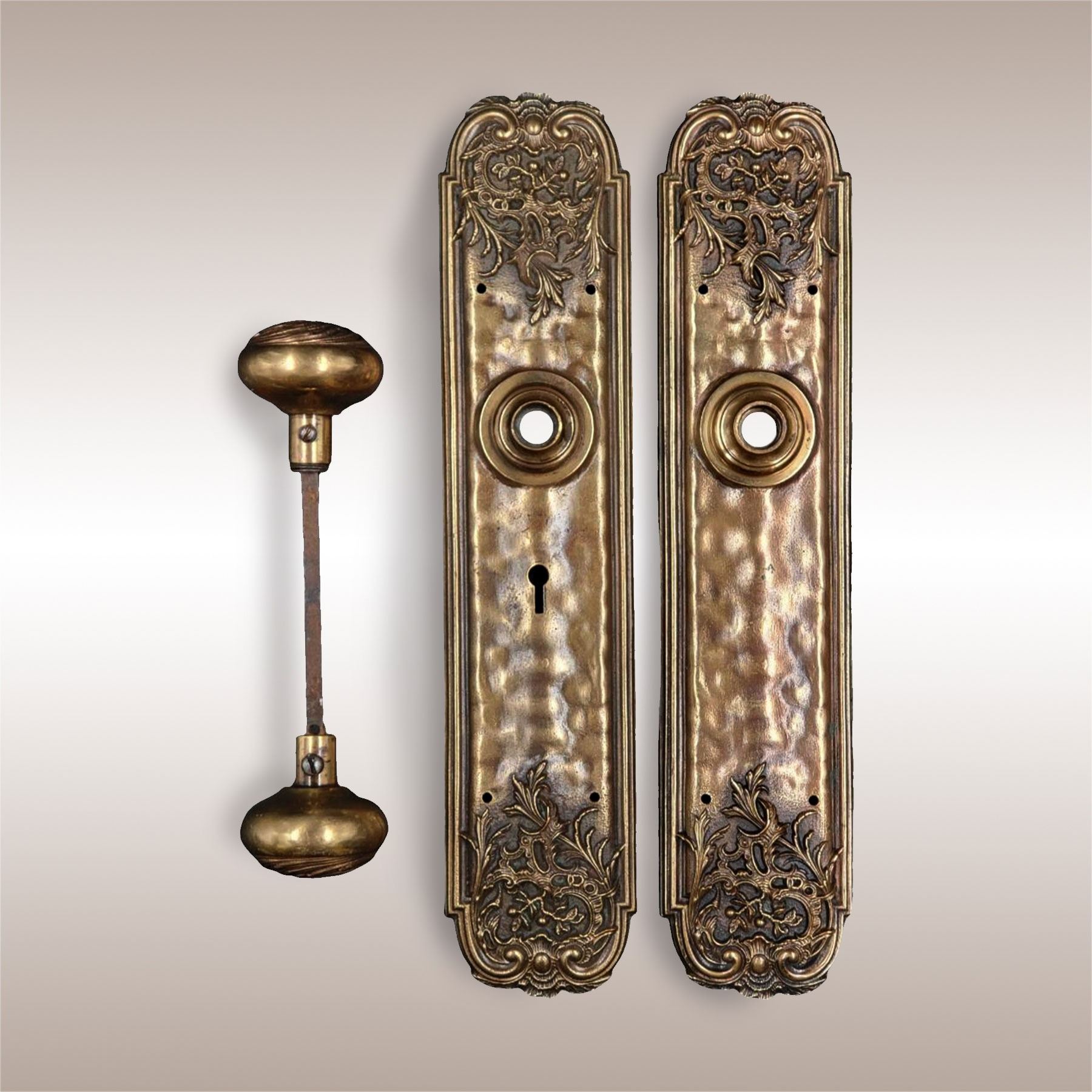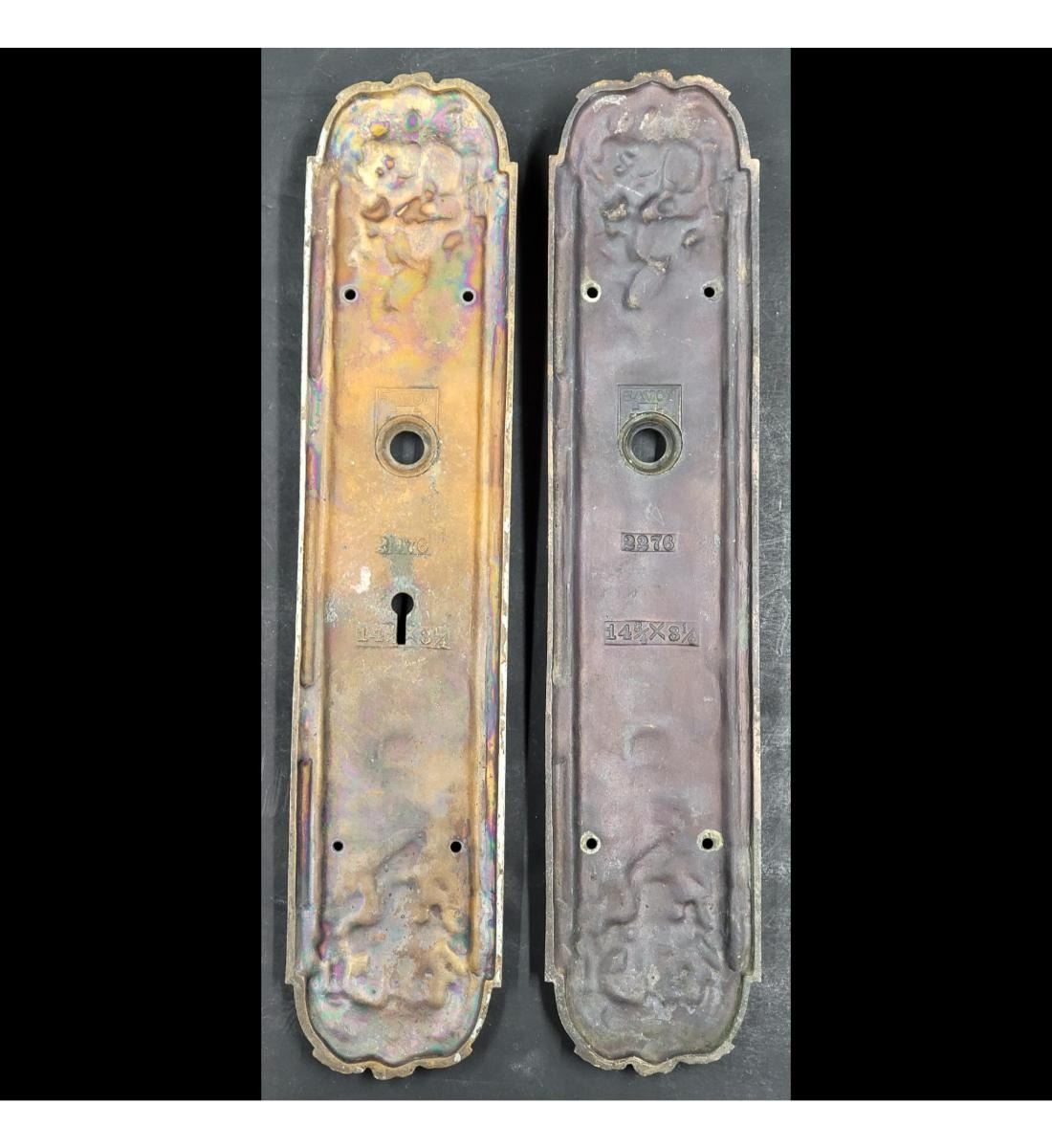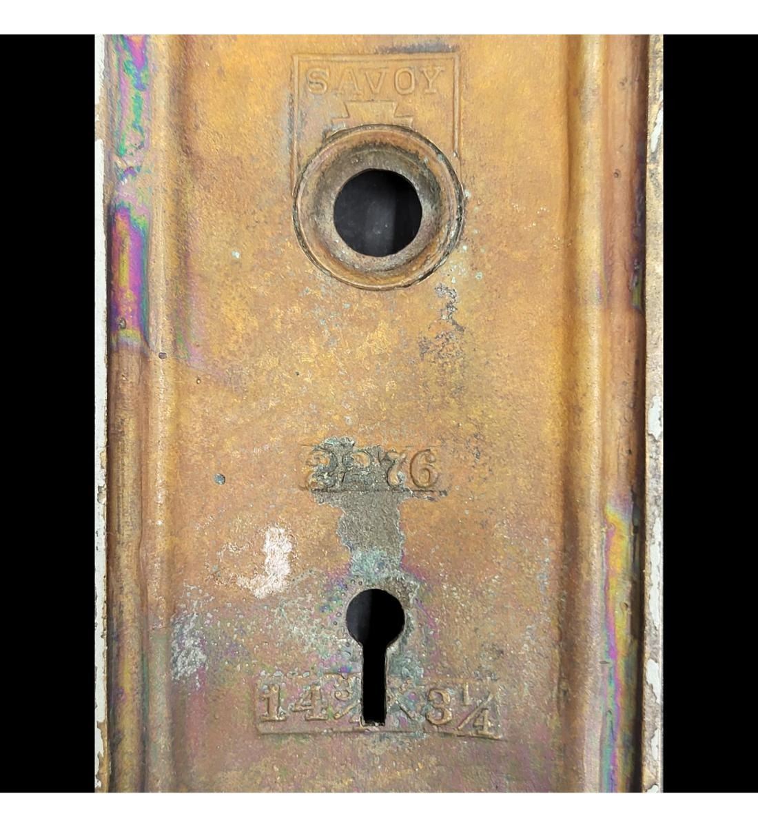 Vintage Savoy Door Plates And Knob Handle. Measures approximately 14-3/4" x 3-1/4 each.