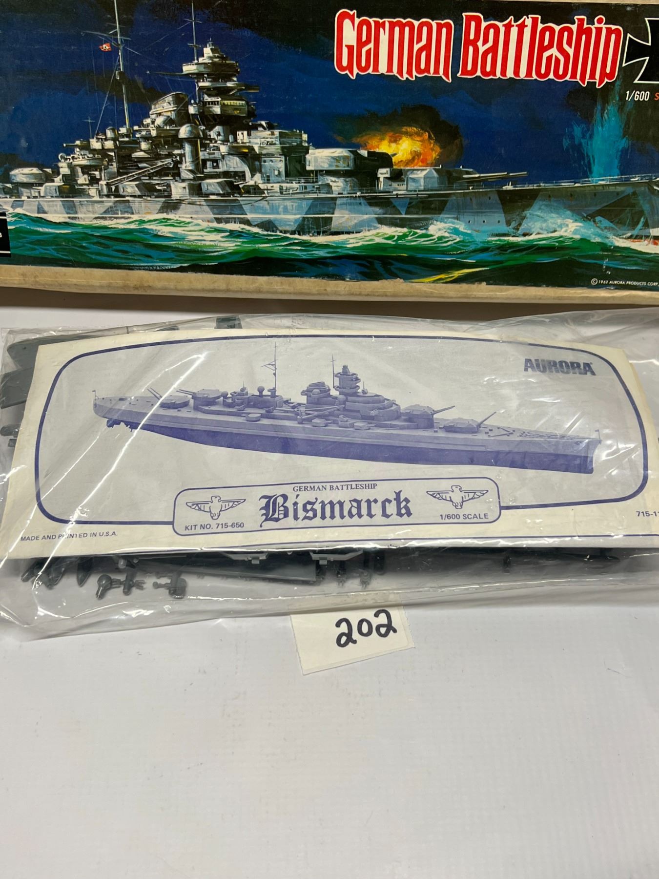 Vintage Sealed Aurora Plastic Model Kit German Battleship Bismarck 1:600