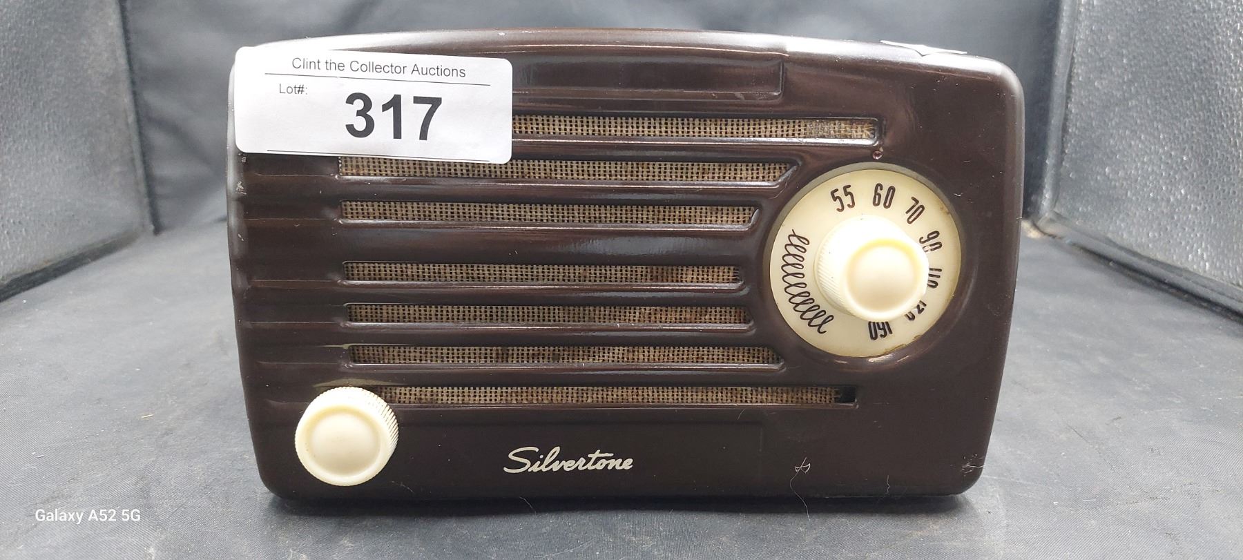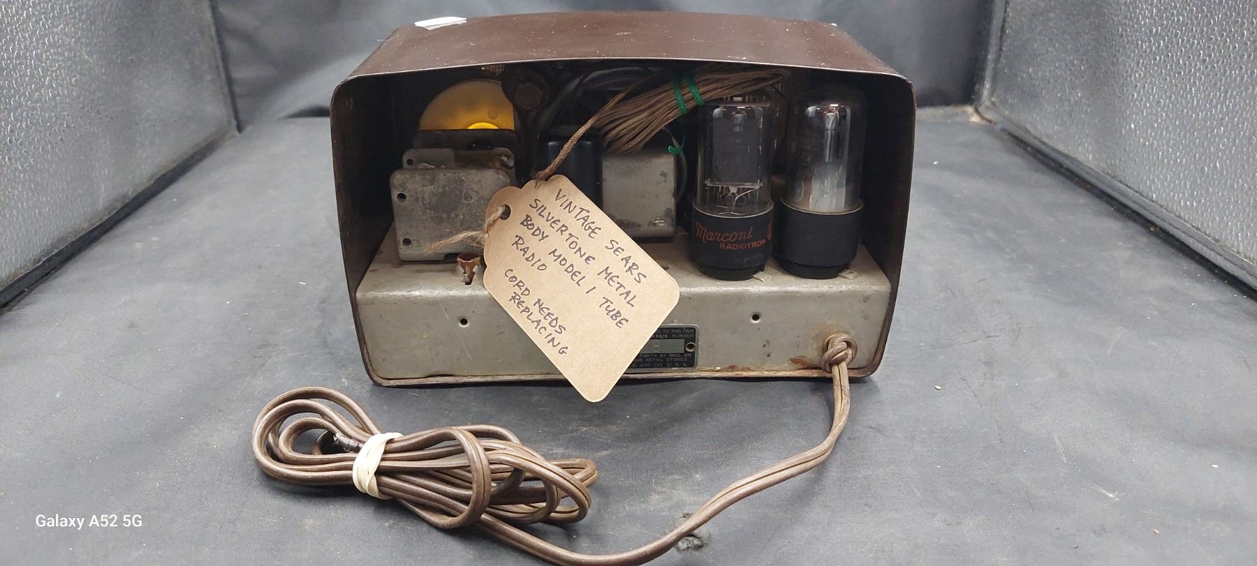 Vintage Sears silver tone metal body radio Model 1, cord needs replacing