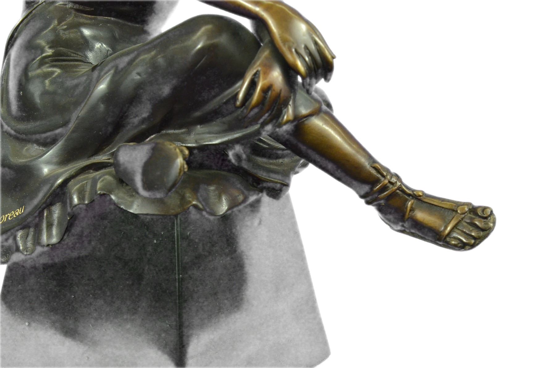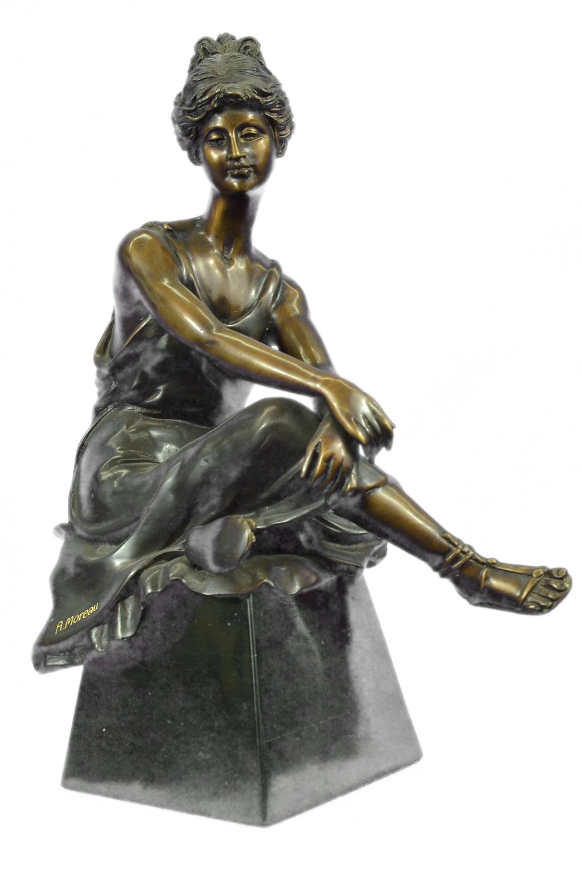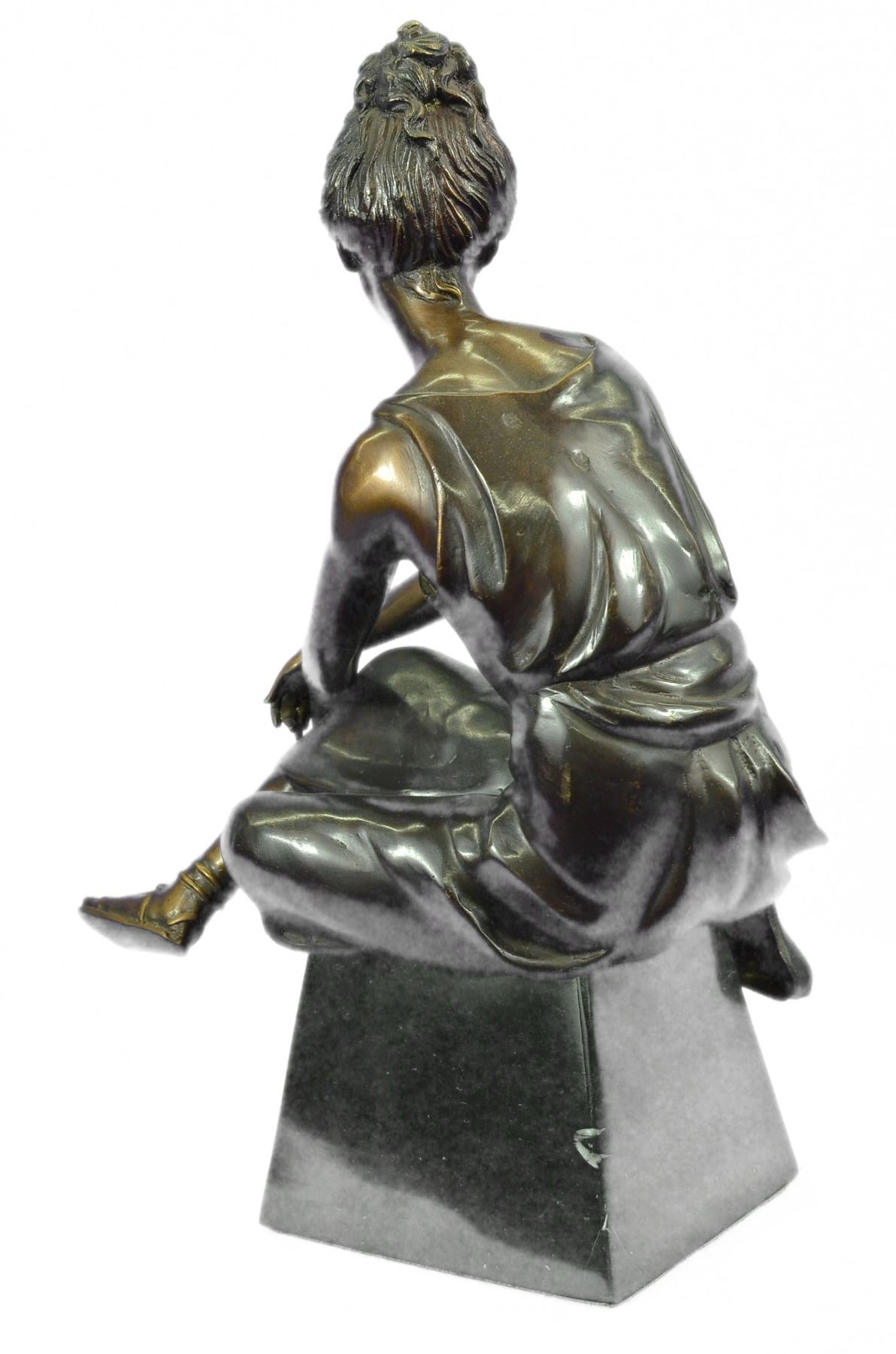 She Is An ArtistS Muse. She Poses For A Painting, Sitting Before His Easel. She Is Perched On A Sheet, Which Is Spread Across A Bench. She Hikes A Knee Up And Gently Cradles It Under Her Arm. Her Long Silky Hair Cascades Over It, Shielding Most Of Her Nude Body. Her Free Long Leg Dangles Over The Side. She Is At Peace In Her Natural State Of Beauty And Is Comfortable Being The Inspiration For The Strokes Of His Paintbrush. She Is A Fully-Detailed Brown Patina And Mounted On A Black Marble Base and She Was Cast Using The Lost Wax Method. Bronze dimensions with marble base: Height 17 X Width 13 inches. Weight: 17 lbs.Please Note: This is a reproduction bronze sculpture from the original molded and signed. This featured bronze sculpture is a recast after the original, and has been done recently. This 100% bronze sculpture is an abstract piece certain to be a conversation piece.Please Note: This is a reproduction bronze sculpture from the original molded and signed. This featured bronze sculpture is a recast after the original, and has been done recently. This 100% bronze sculpture is an abstract piece certain to be a conversation piece.