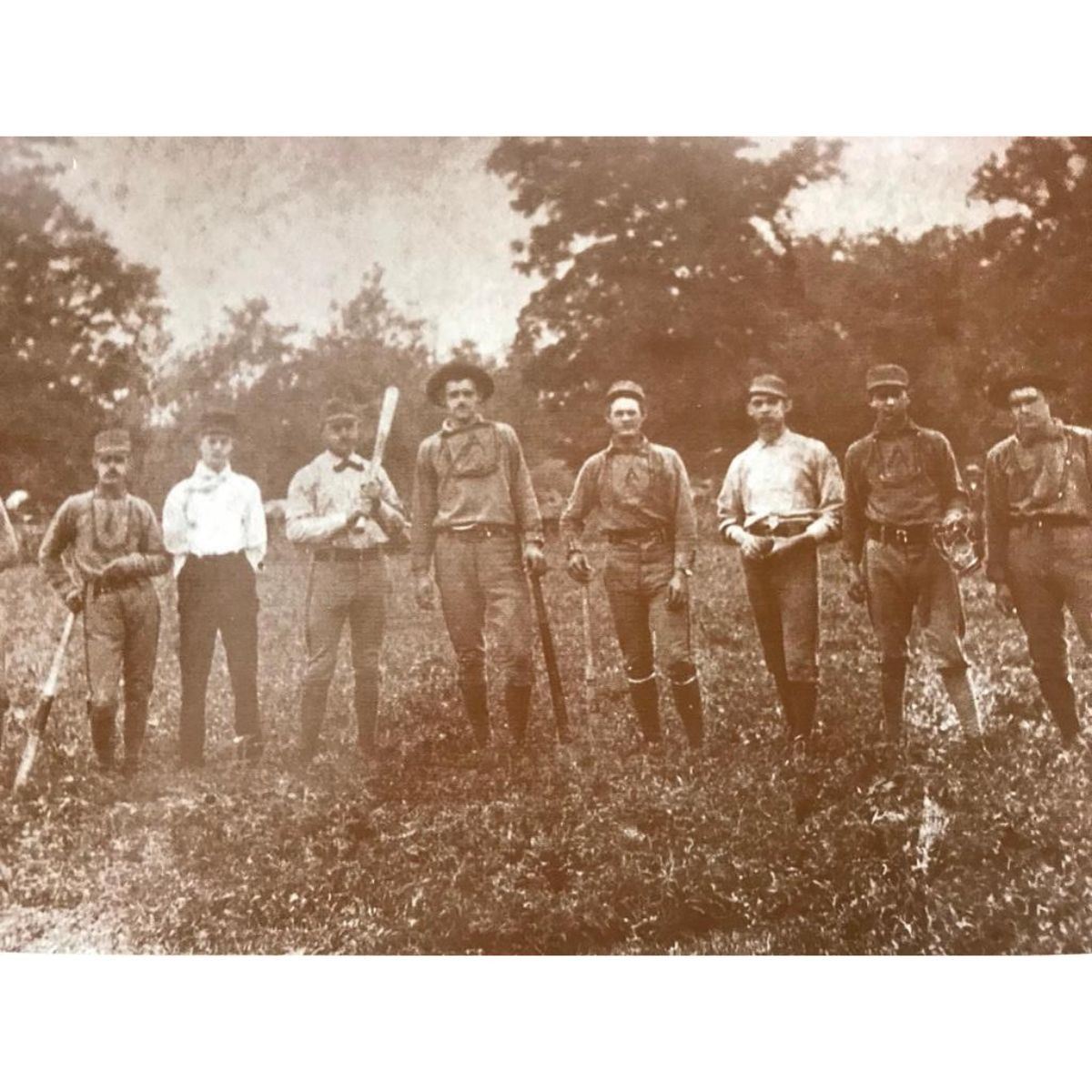 Vintage 1990's era, sepia-tone photo print on heavy cardstock. c.1885 Baseball Team. Part of the inventory from The American Heritage Gallery, in original shrink wrap cardboard display packaging.Â