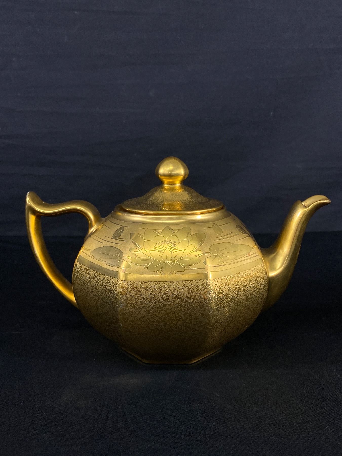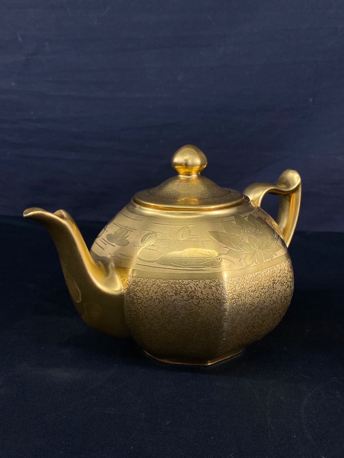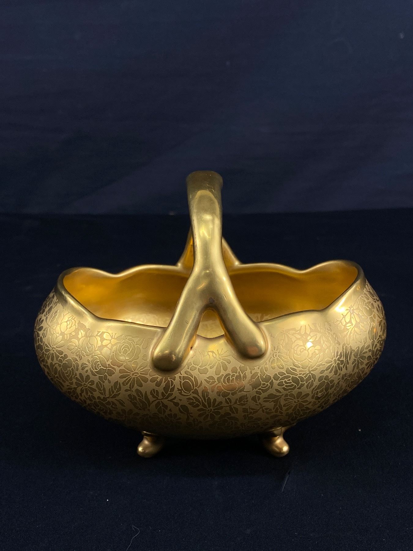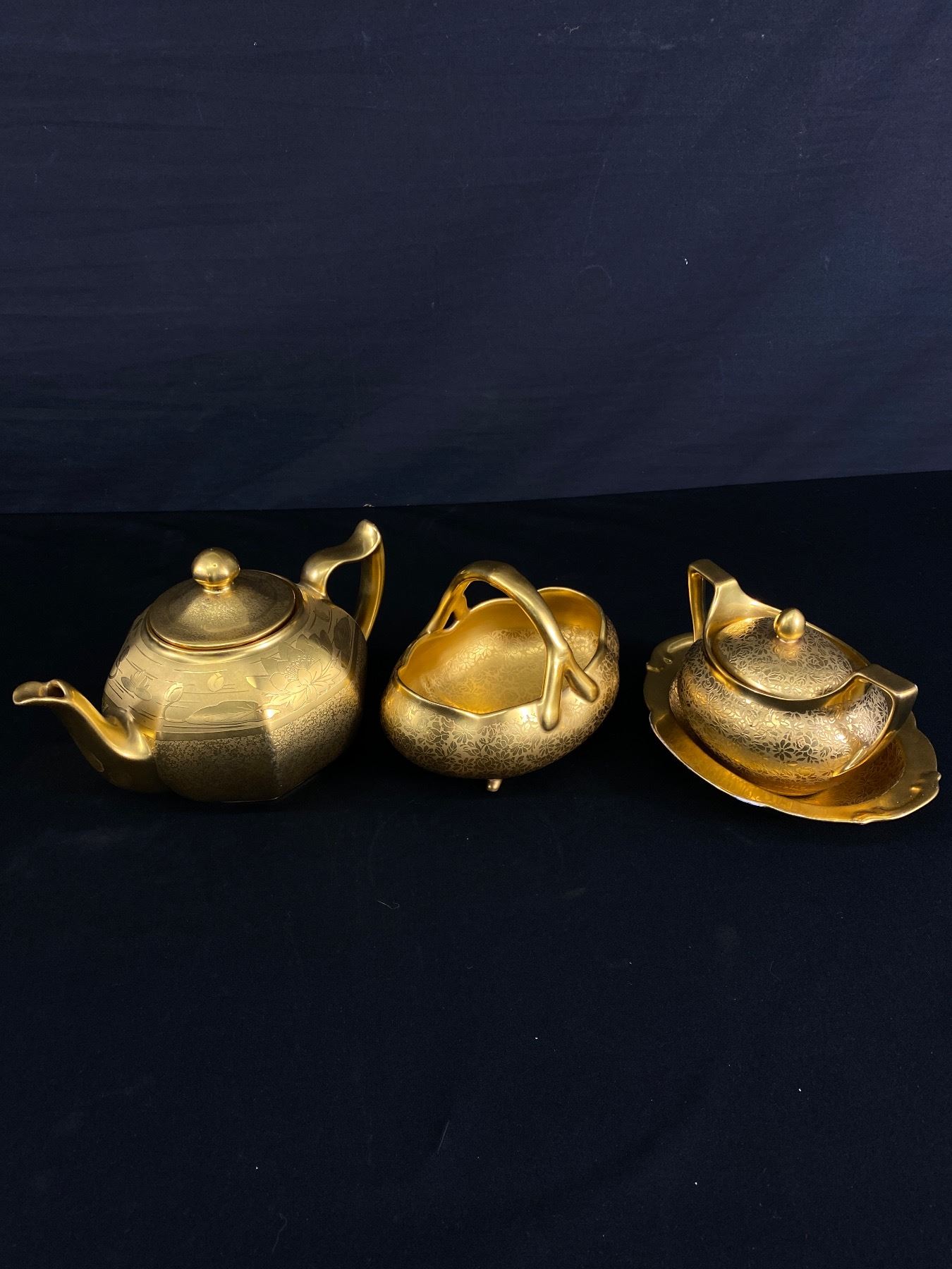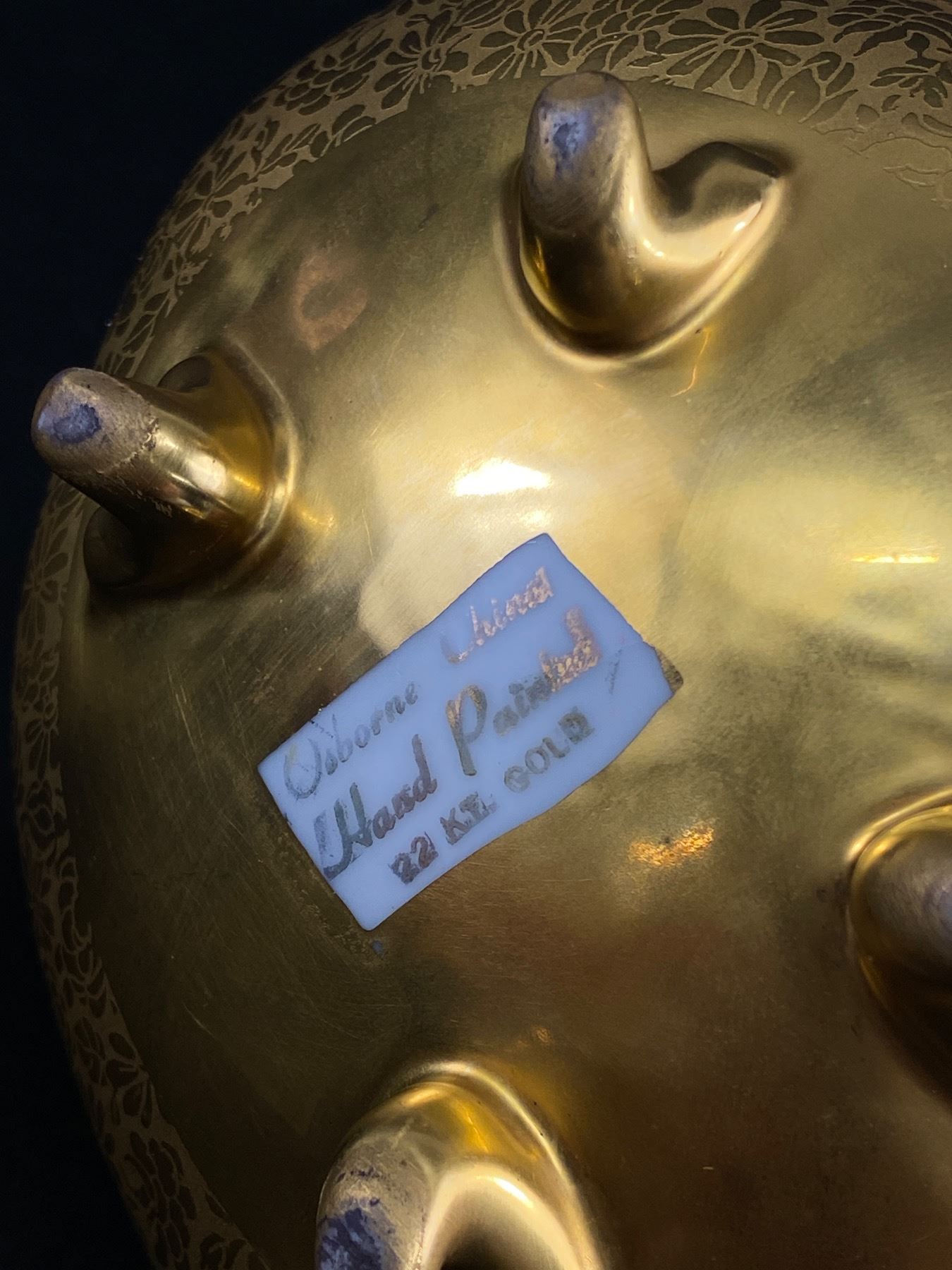 Vintage Serving Lot. Basket Marked Osborn China 22 KT Gold Handpainted,TeaPot Marked Osborne & Others Marked Tolpin
