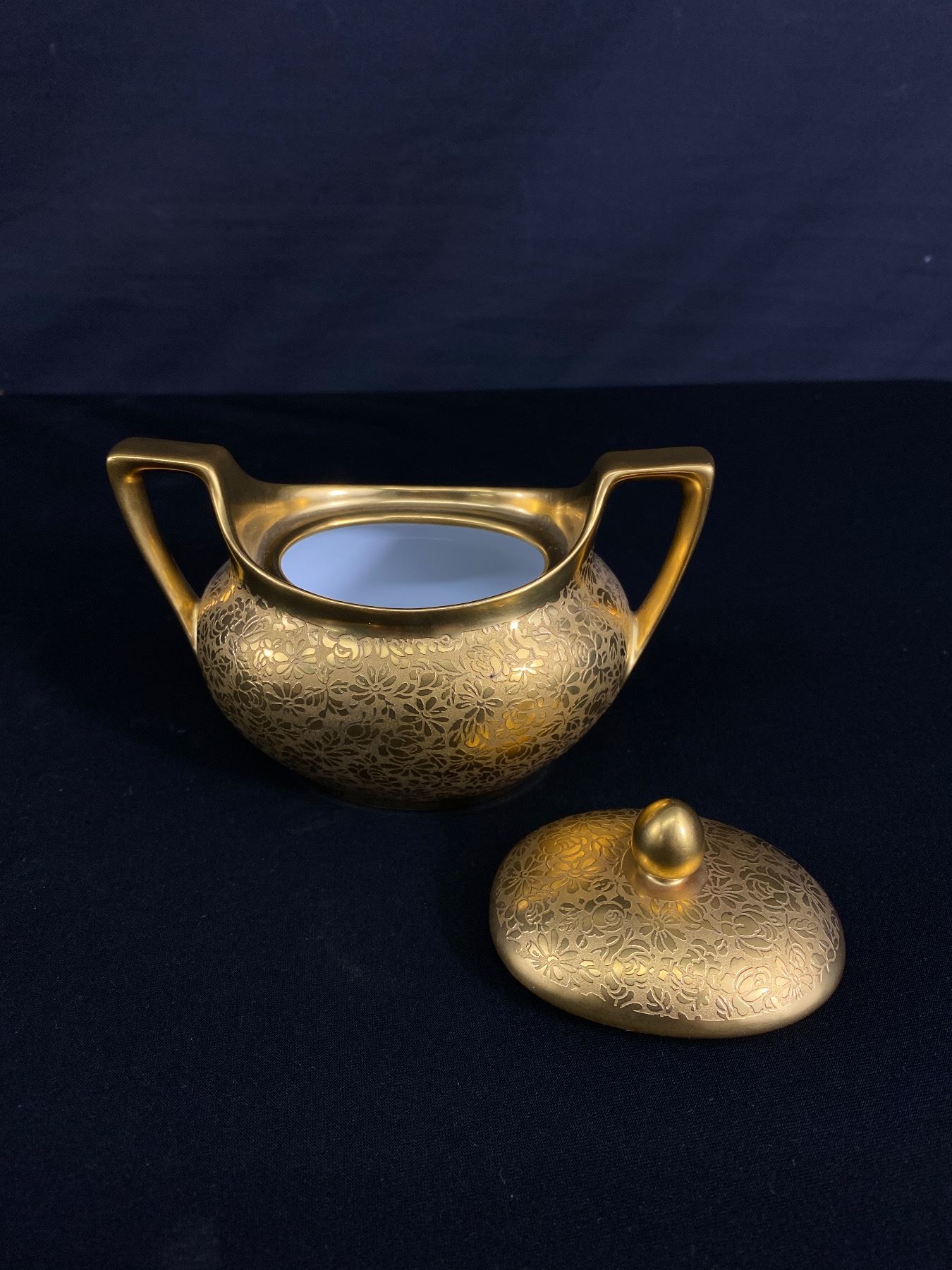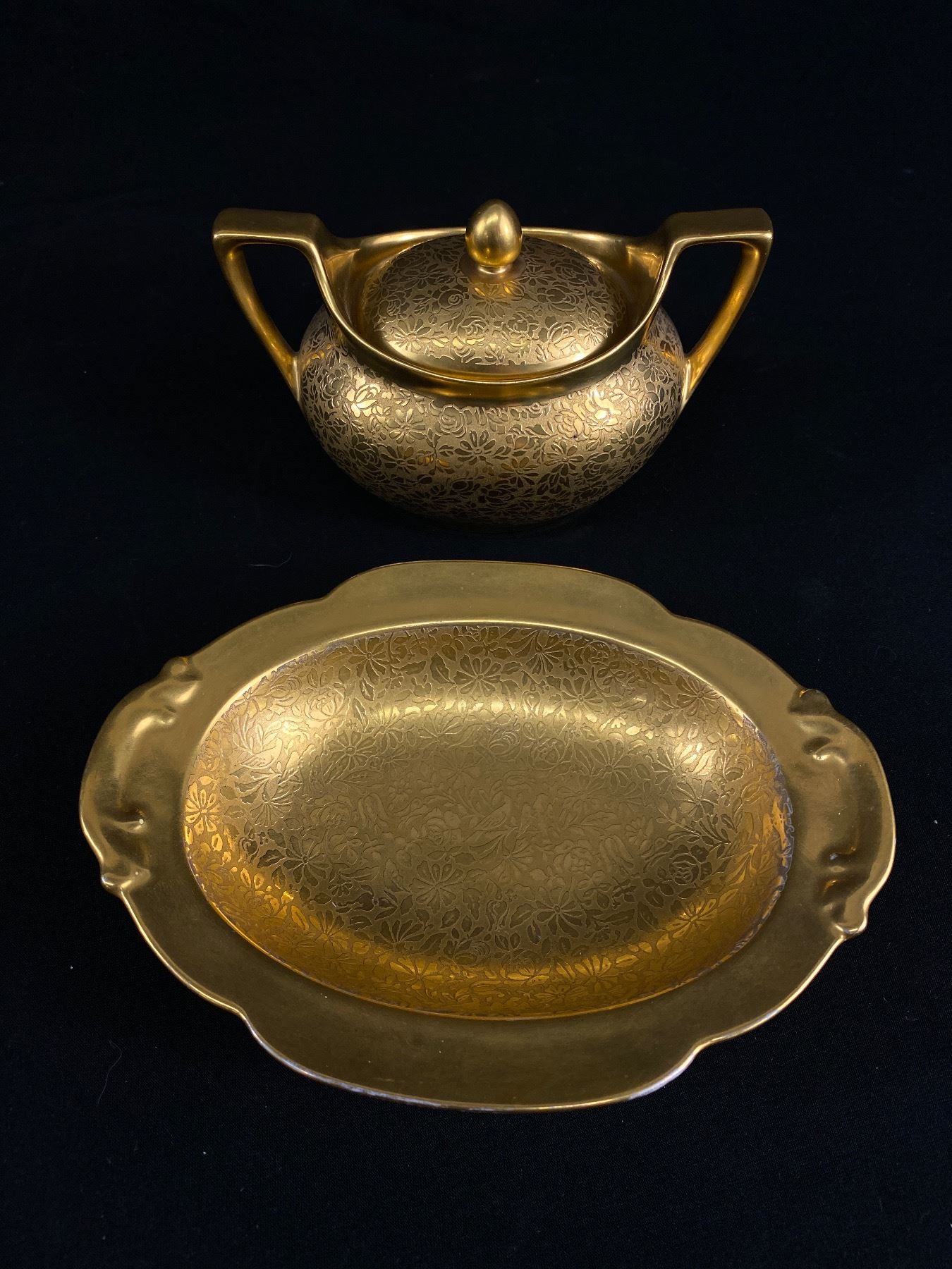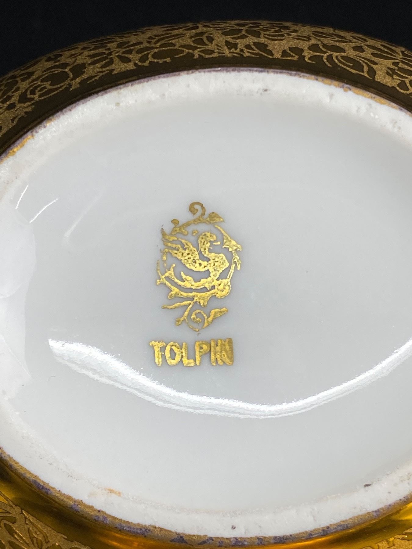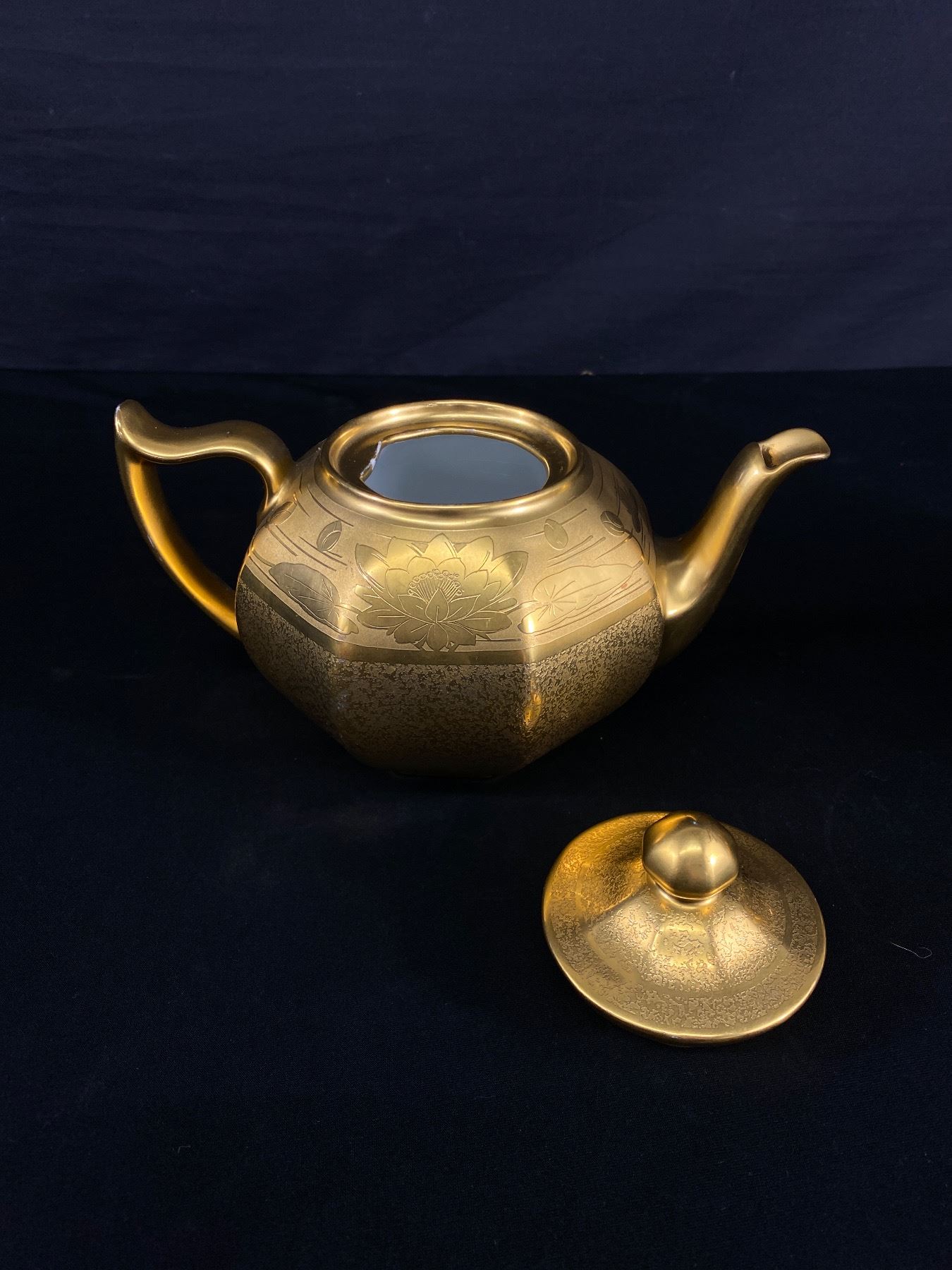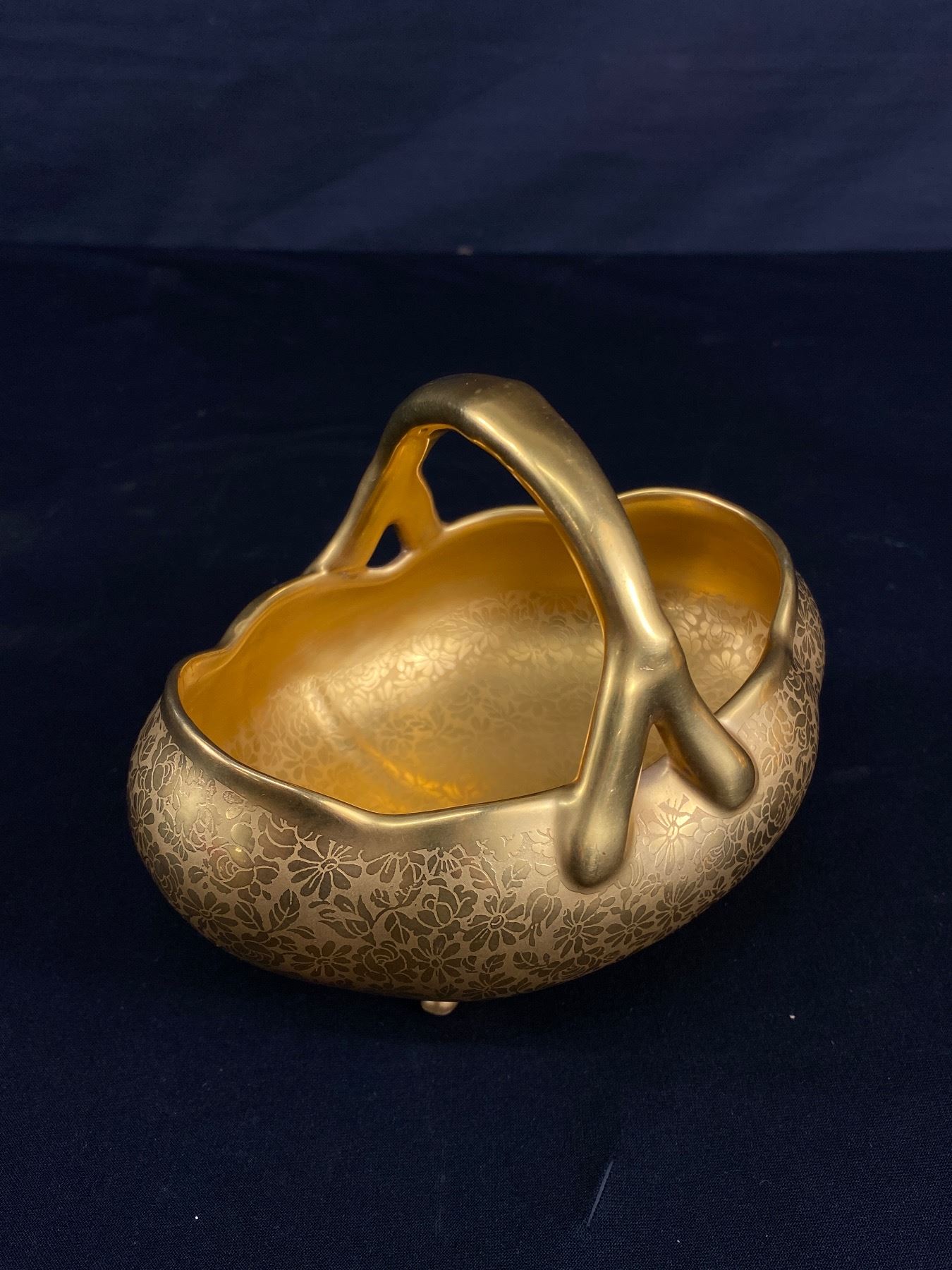 Vintage Serving Lot. Basket Marked Osborn China 22 KT Gold Handpainted,TeaPot Marked Osborne & Others Marked Tolpin
