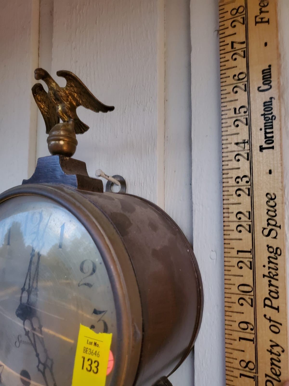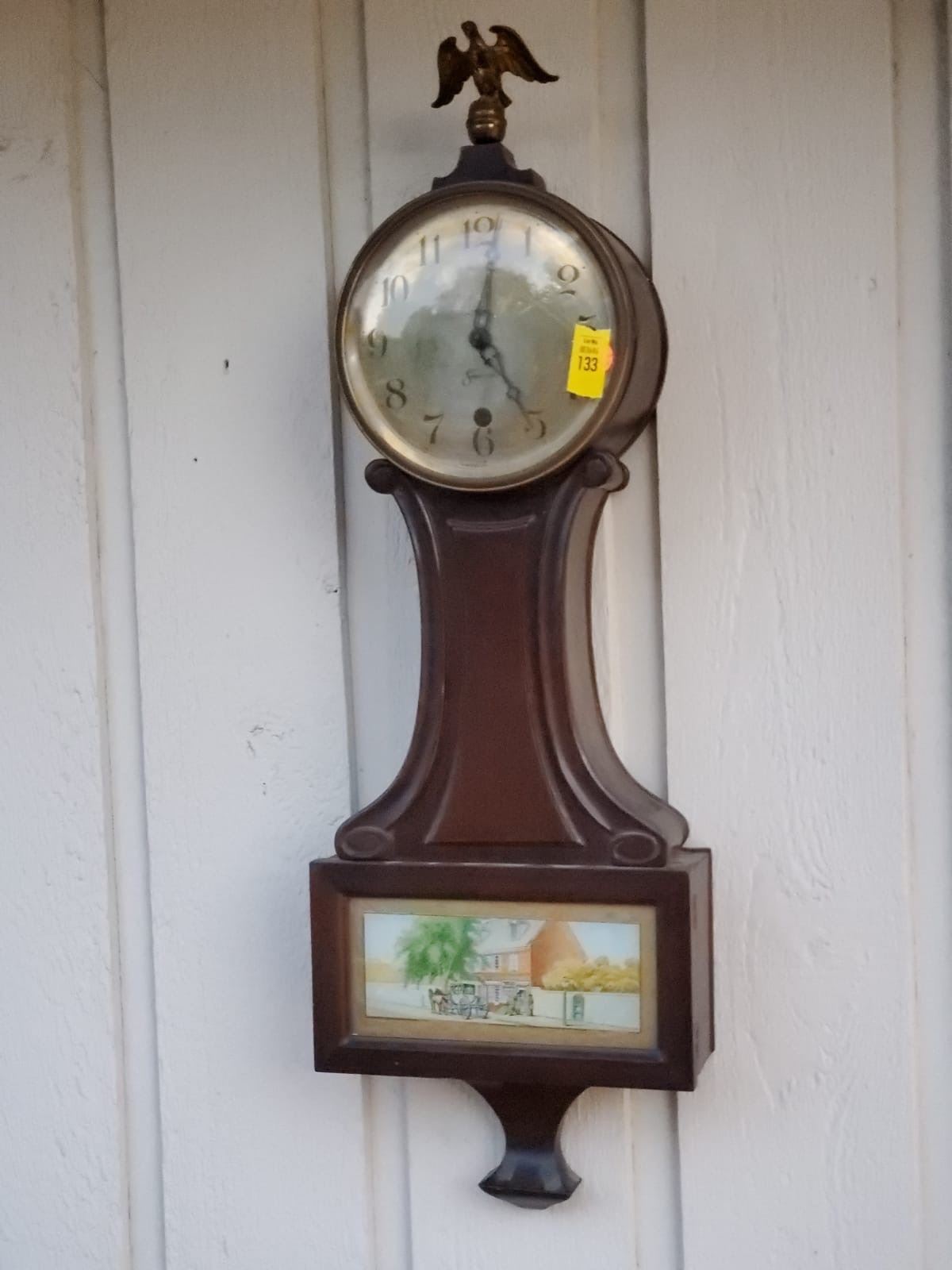 Sessions Banjo clock with eagle finial, reverse painted glass.