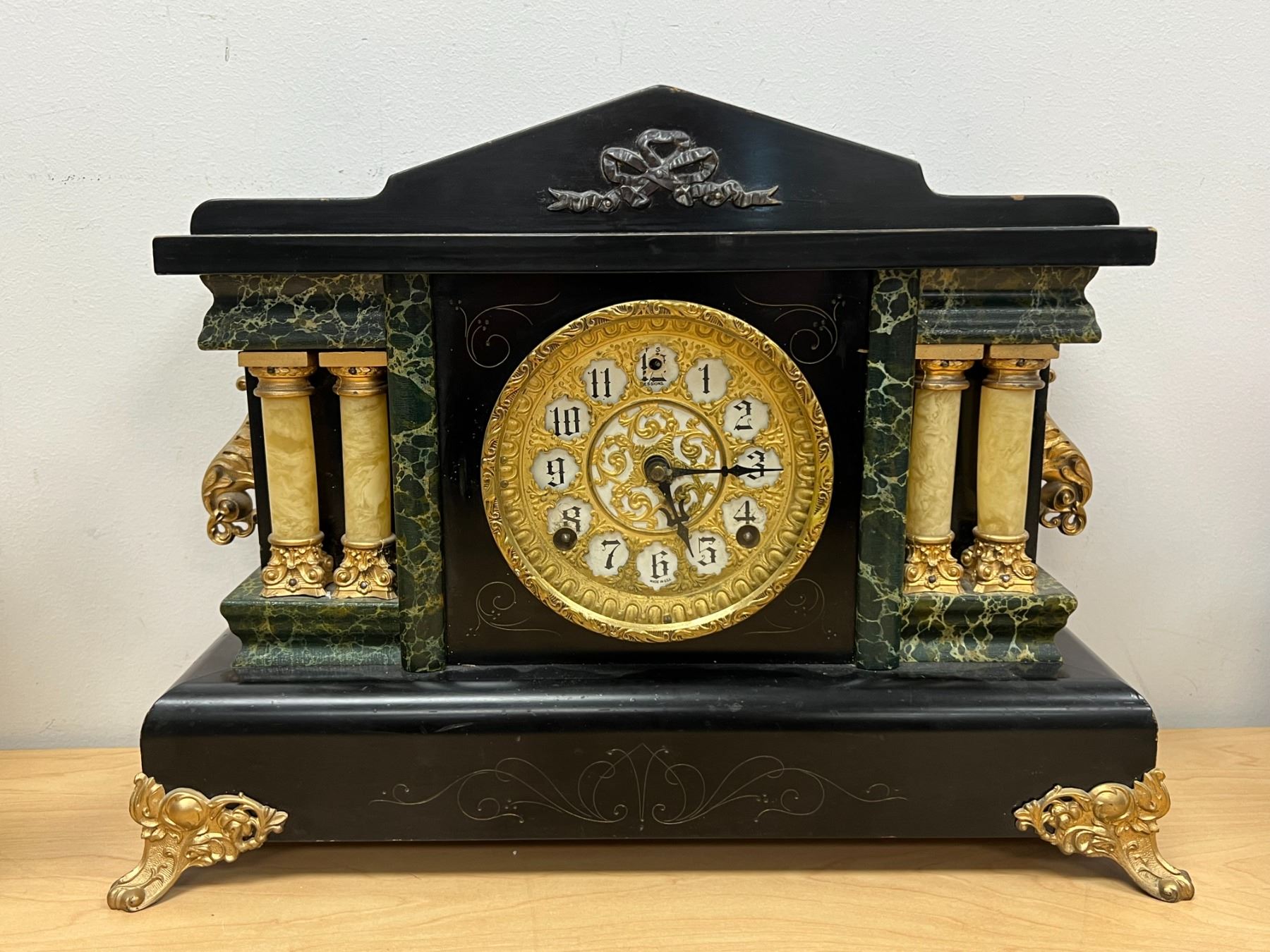 Vintage Sessions Mantle Clock with Pendulum & Keys - 18x6.75" & 13"T NOT tested