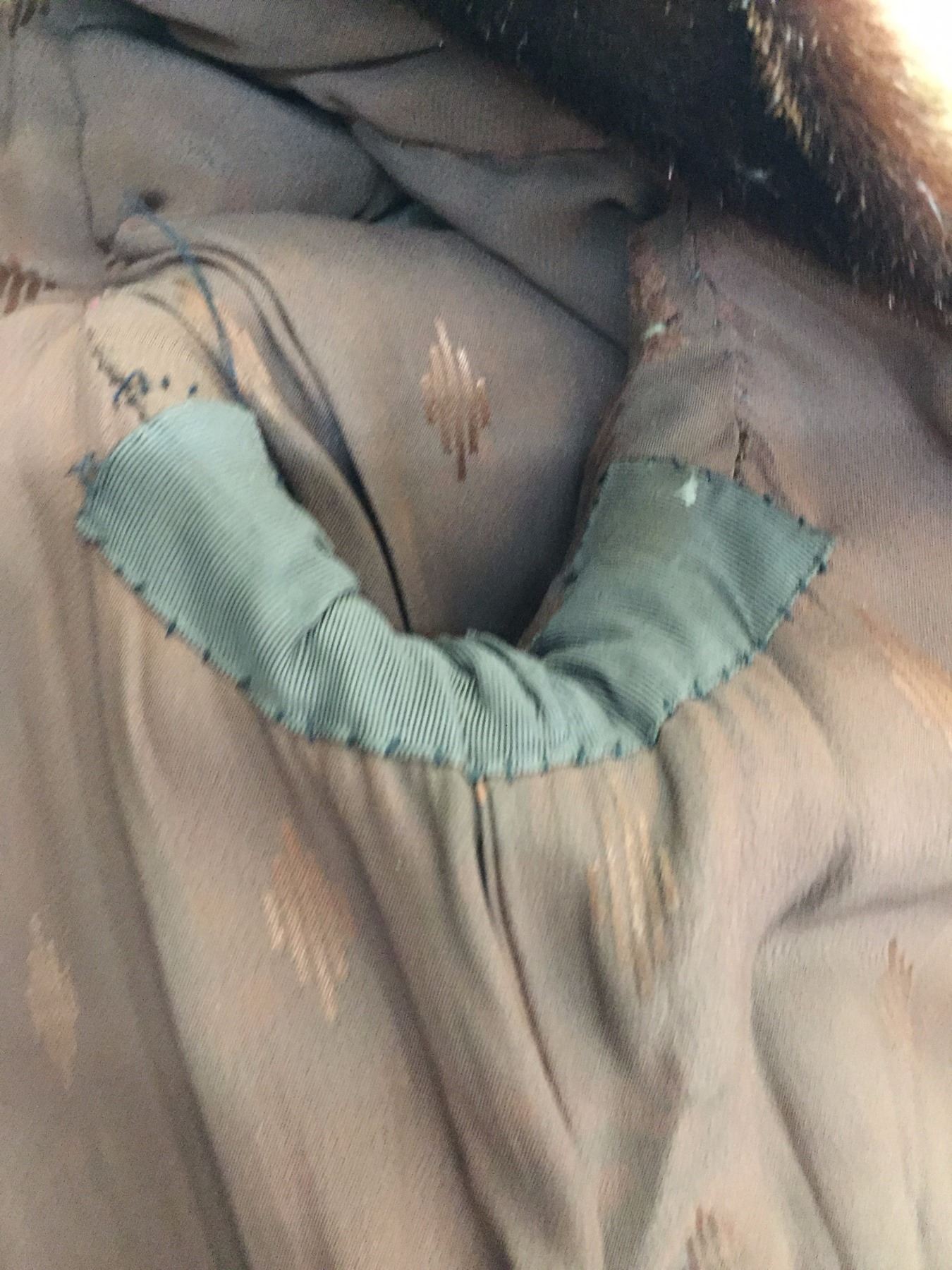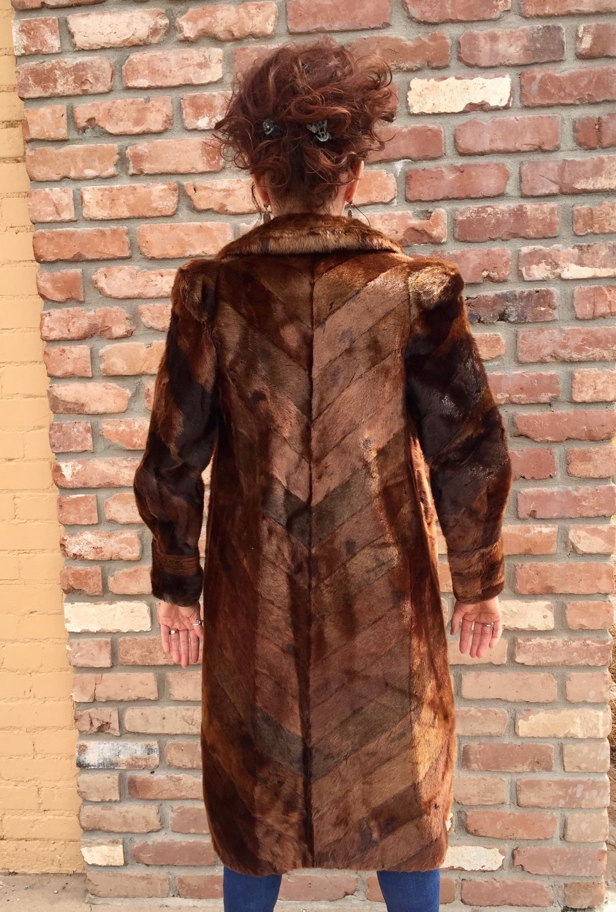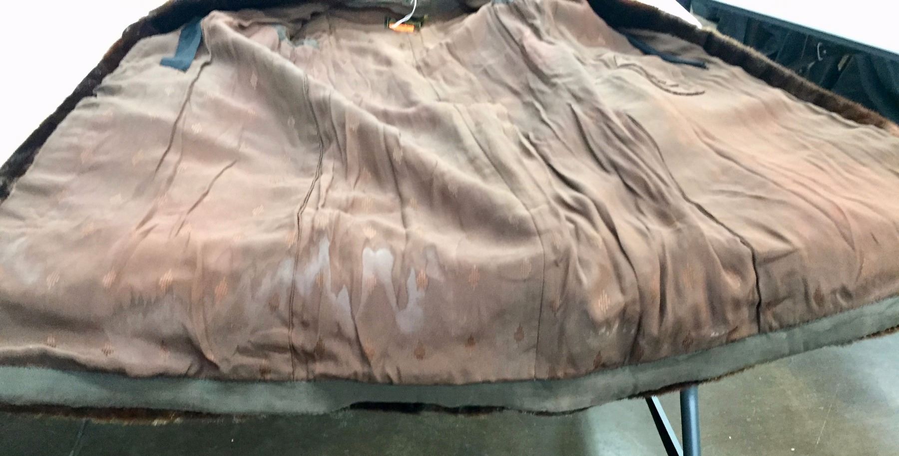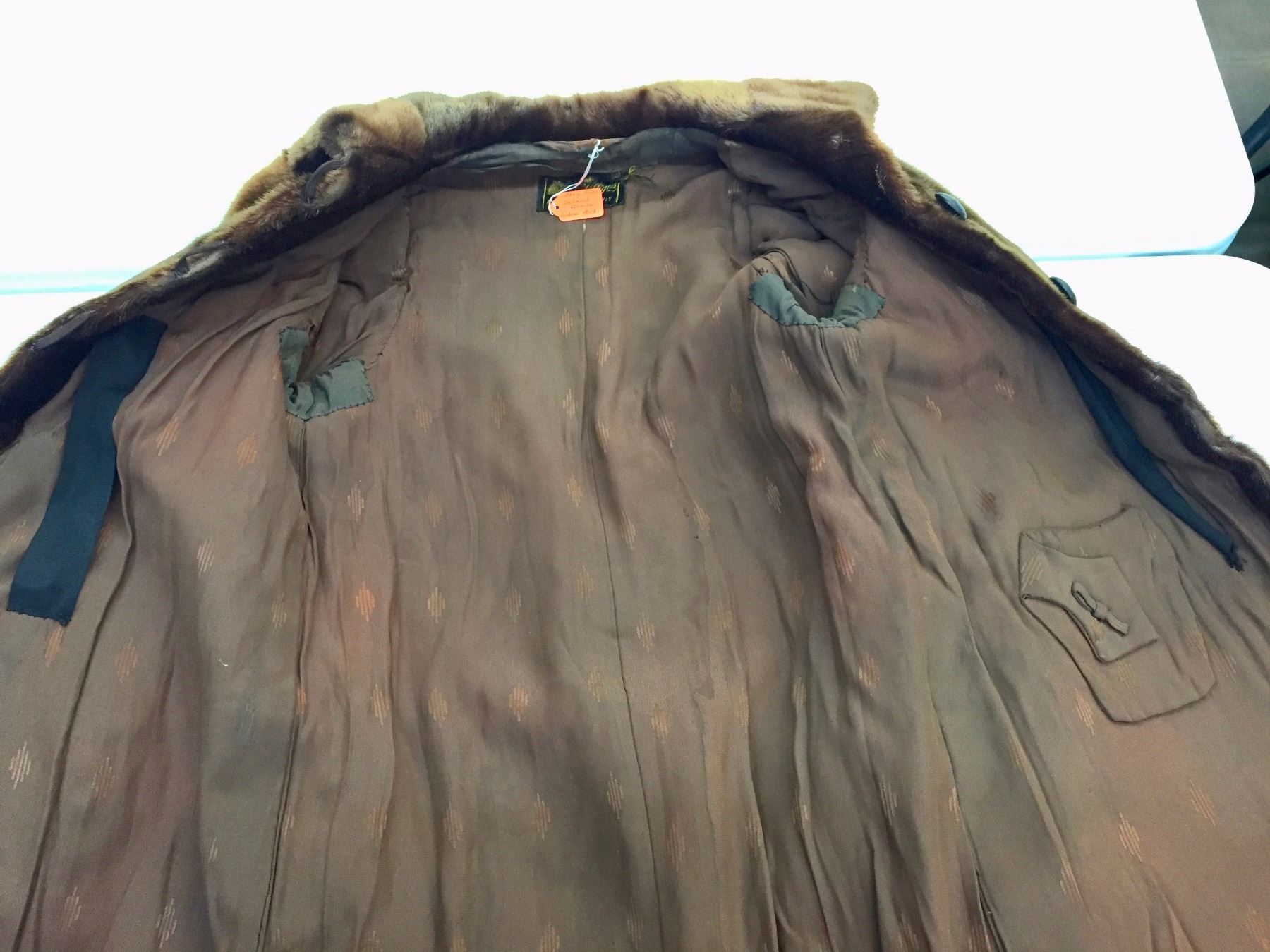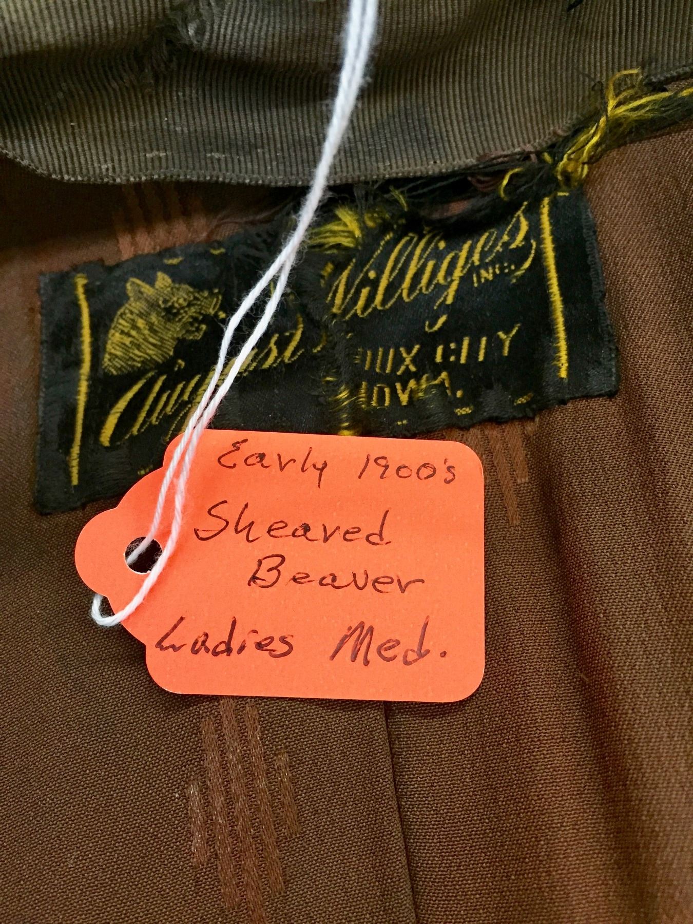 Description: A nice, early 1900s, sheared beaver, long tail coat. Maker: August Villages, Sioux City, Iowa. Approx. Age: Early 1900s. Size: Approx. ladies small - xtra small. Condition: Pretty good for its age, wear expected. Please look closely at the pictures - they are an important part of our description. Shipping: There will be a $8 handling / packaging fee for shipping this lot. The actual cost of postage will be added on top of that.