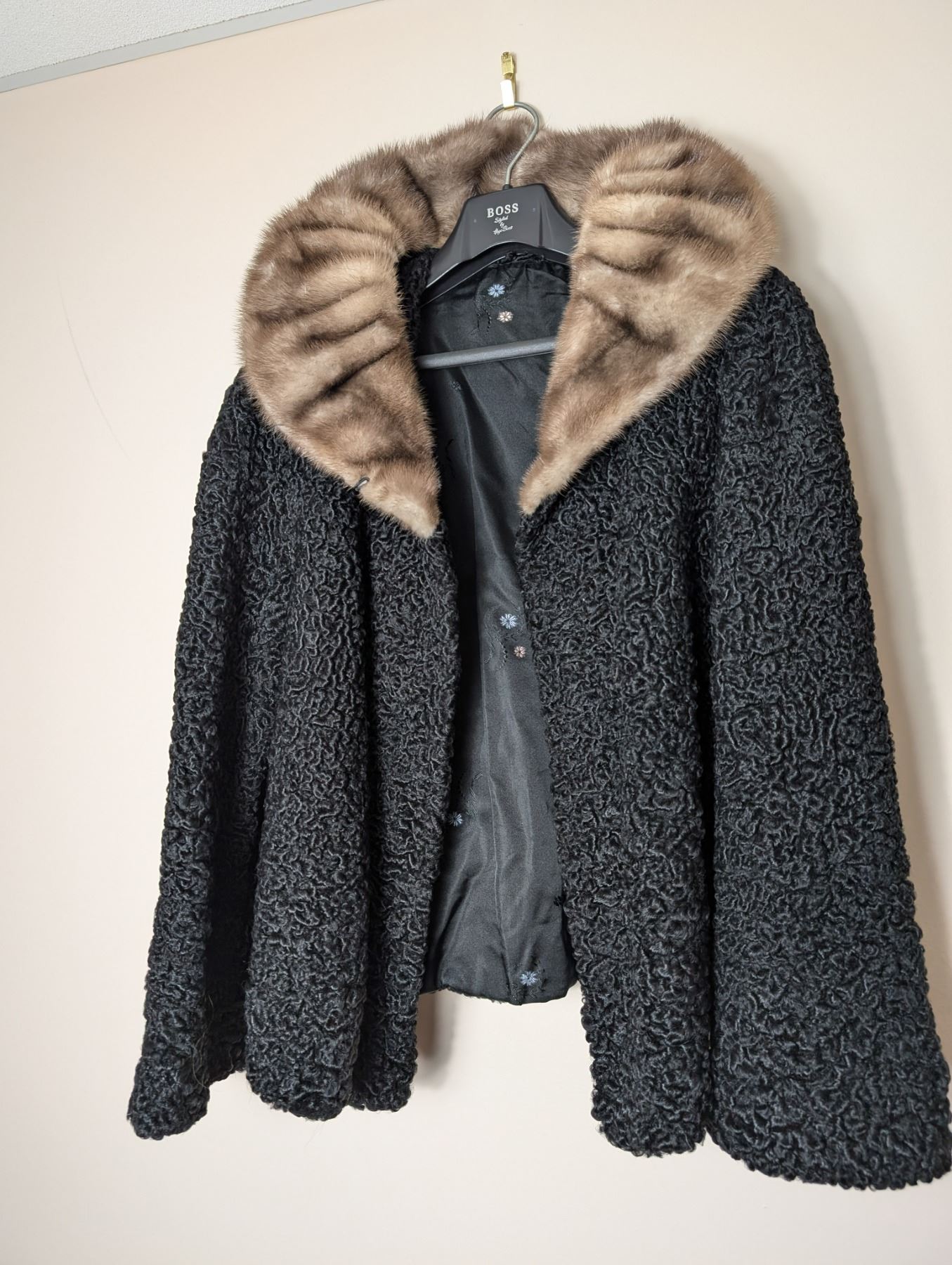 Vintage Sheared Persian Wool Jacket Brown Collar Size Large