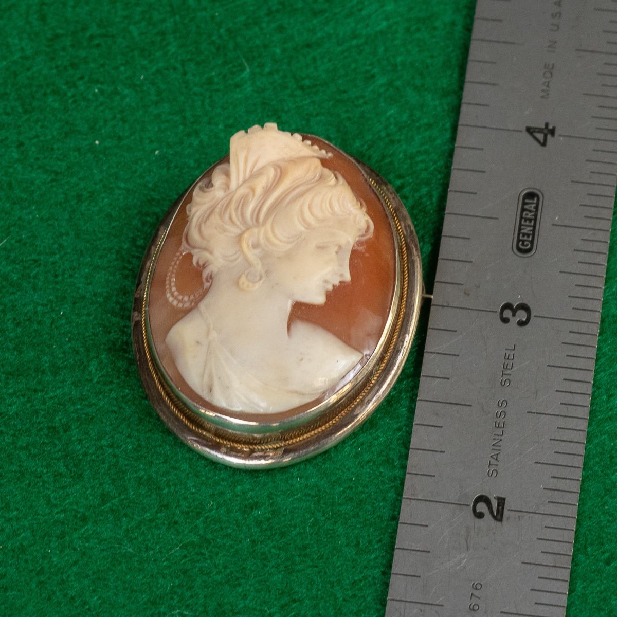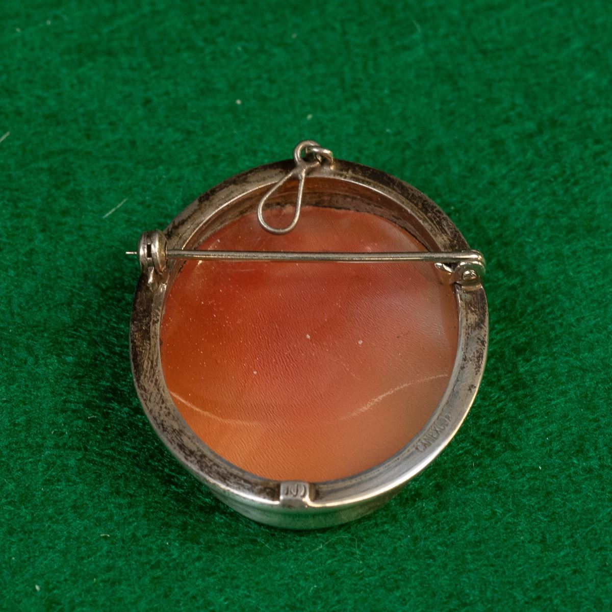 Vintage Shell Cameo Pin Pendant, measures 1.5''L x 1.25''W, stamped CamMexico