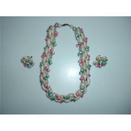 <tr><td>Title:Vintage Shell Necklace and Earring Set</td></tr>