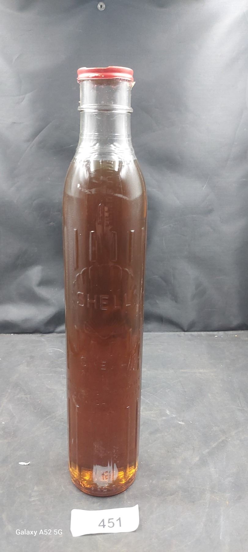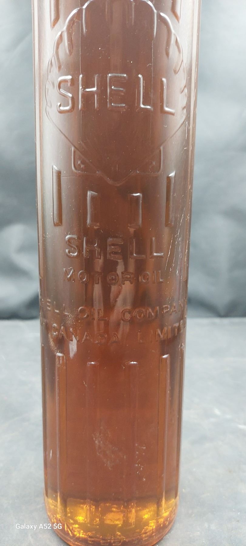 Vintage Shell motor oil embossed oil bottle with original cap 15" tall